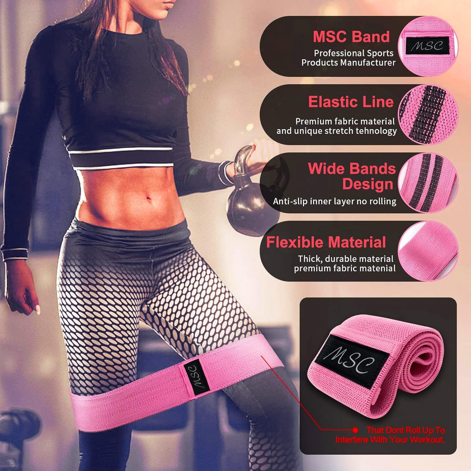 MSC Medium Strength Resistance Bands for leg Workout, Booty workout, General Exercise – Booty Bands Gym accessories for women – Workout Bands Gym Fitness Fabric resistance band Stretch Loops Band Anti Slip Elastic fitness equipment – Medium