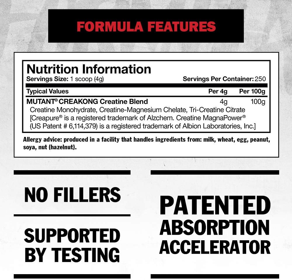 MUTANT CREAKONG is the most advanced creatine supplement we’ve ever formulated! Each serving contains three of the most cutting-edge forms of creatine commercially available and has been lab tested to ensure 100% purity in every bottle.