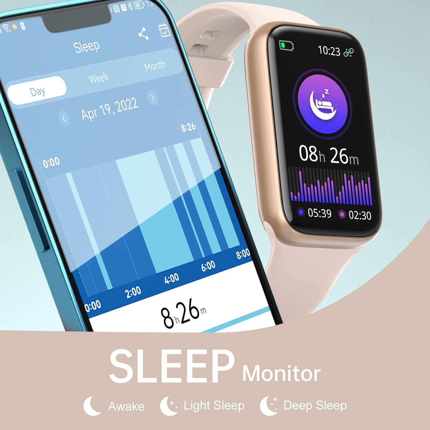 【Sleep Tracker & Smart Reminder】The sleep watch enables you to see the quality of each night’s sleep in the APP and on wrist by time asleep, time awake, time in deep and restlessness. The smart reminder feature alert you of incoming calls, text, SNS or sedentary and drinking water reminder, women’s menstrual period.