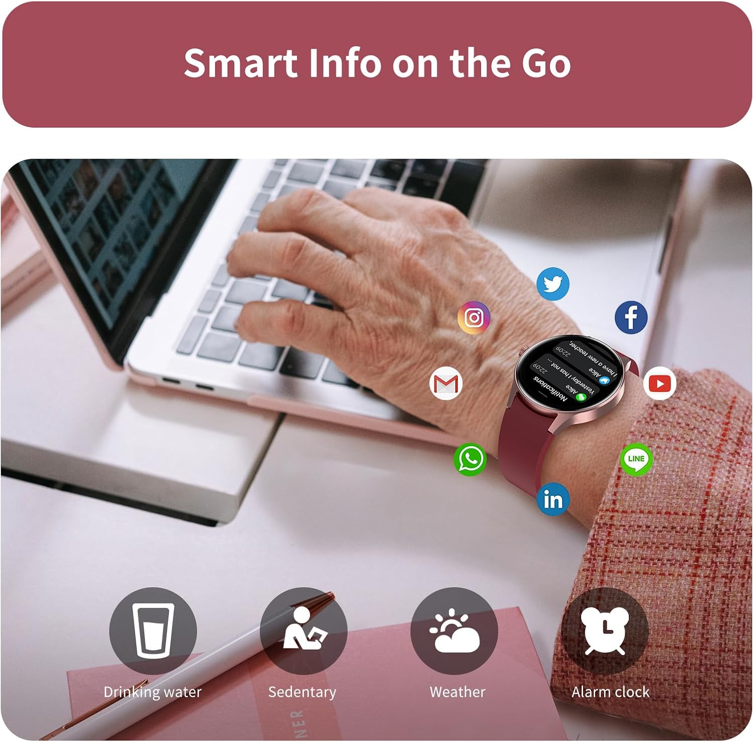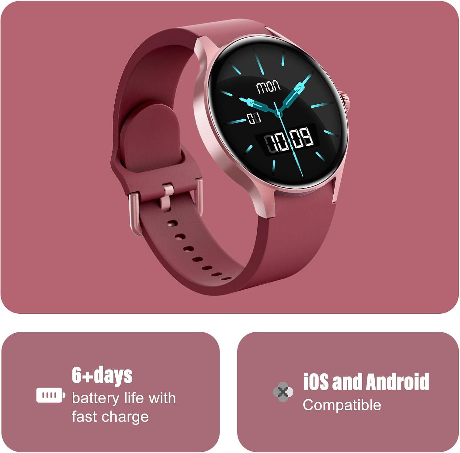 【Exceptional Battery Performance】 Embrace uninterrupted performance with this womens smart watch, offering 5-7 days of battery life. This extended power ensures you stay connected, productive, and engaged without the inconvenience of frequent recharging, making it your reliable companion for extended periods.