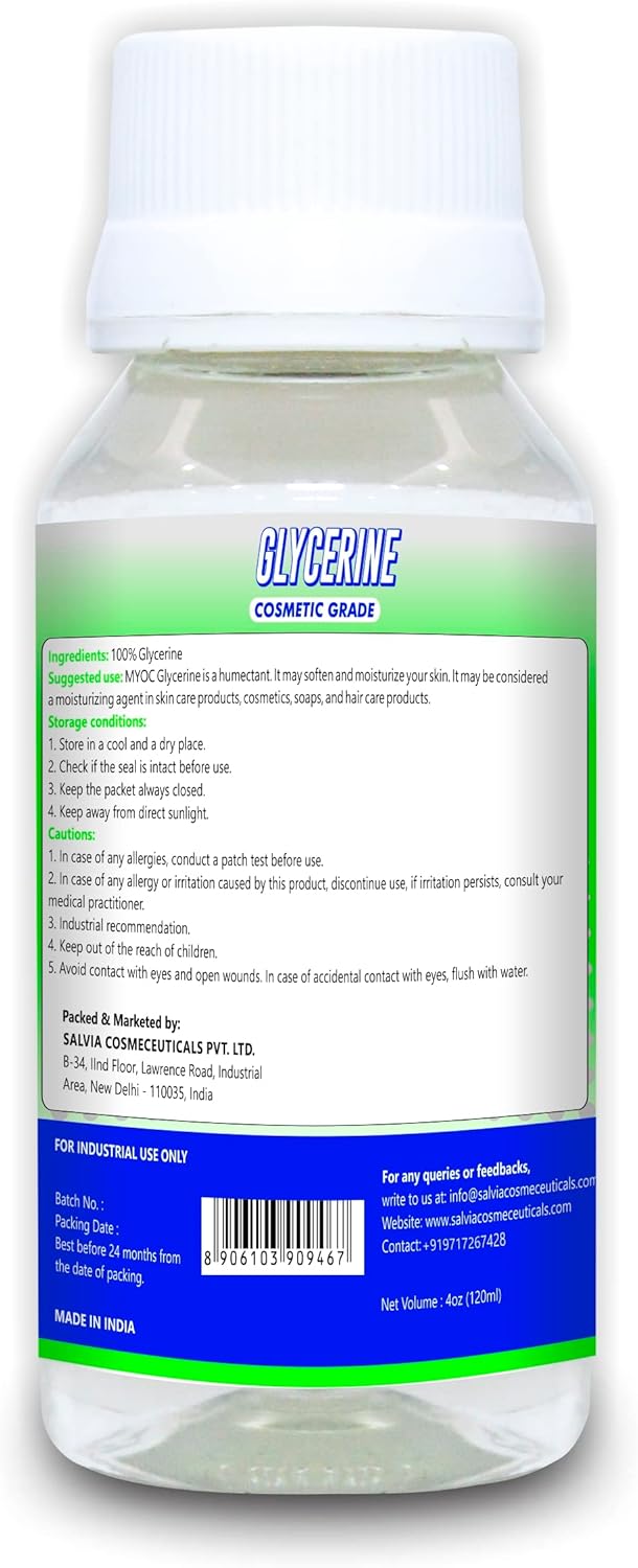 Myoc Pure Glycerin (120ml) white, organic, no adulterants | hair care, skin care, body, lip care, soap, gel, lotion | hydration, relieve dryness, refresh the skin’s surface