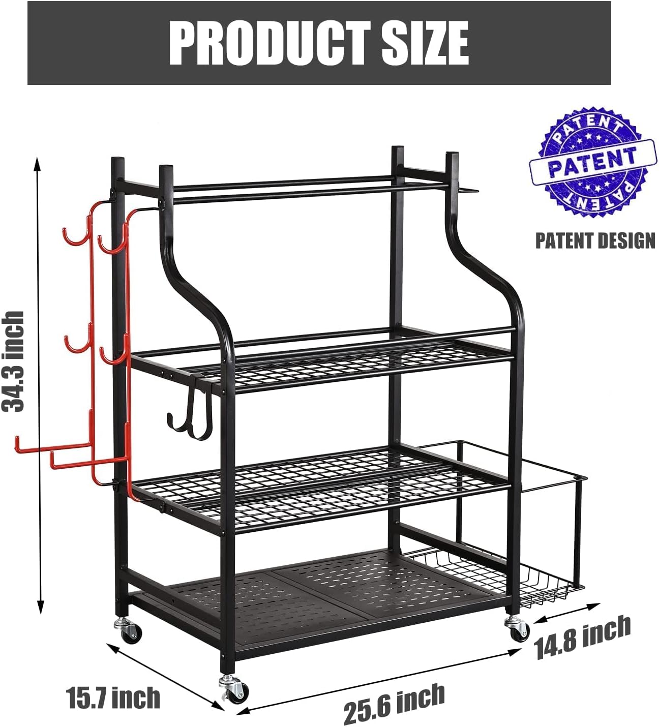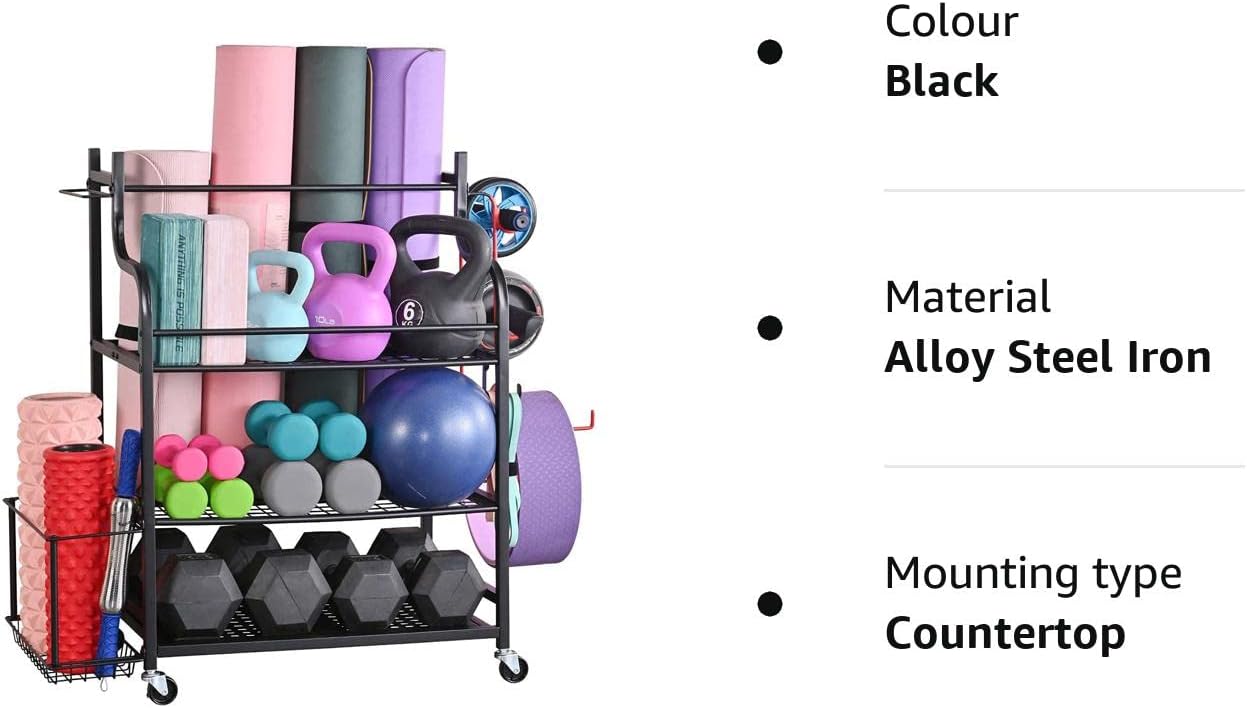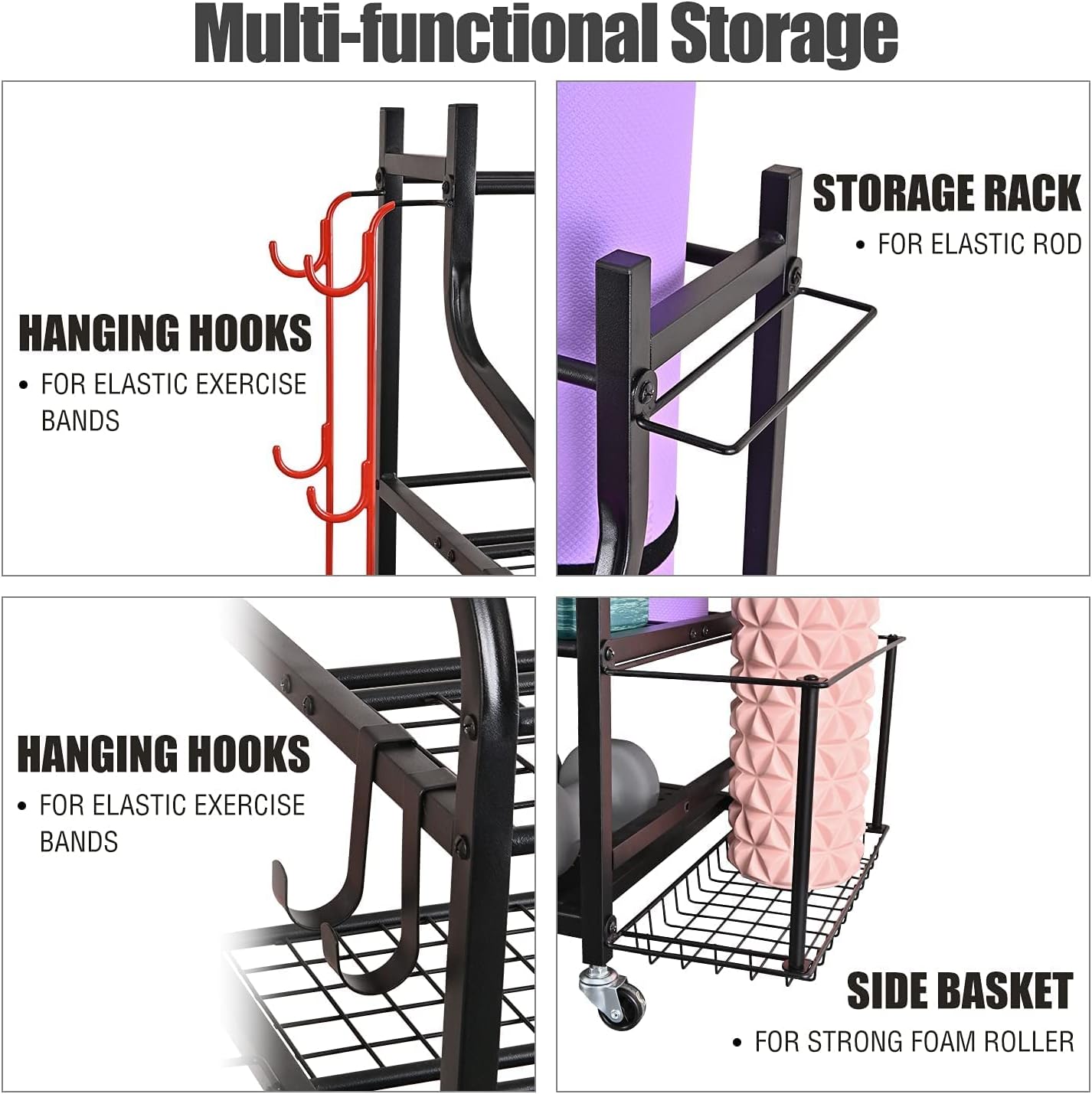 Mythinglogic Yoga Mat Storage Racks,Home Gym Storage Rack for Dumbbells Kettlebells Foam Roller, Yoga Strap and Resistance Bands, Workout Equipment Storage Organizer With Hooks and Wheels