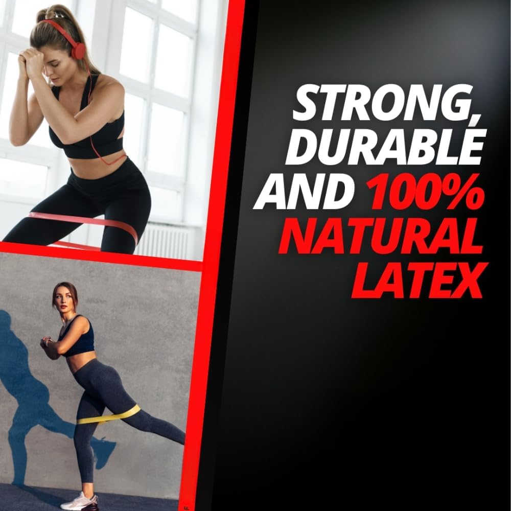 [Strong, Durable and 100% Natural Latex] : The material helps prevent tearing and allows for a durable and highly elastic band. Due to its natural properties, our resistance bands provide neither a danger to the skin or a strong scent.
