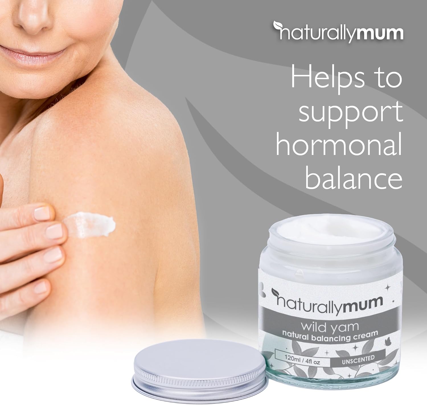NaturallyMum Wild Yam Balancing Cream | Support for Perimenopause and Menopause Symptoms | Support Hormonal Balance for Women | Topical Cream | Unscented | 4fl oz
