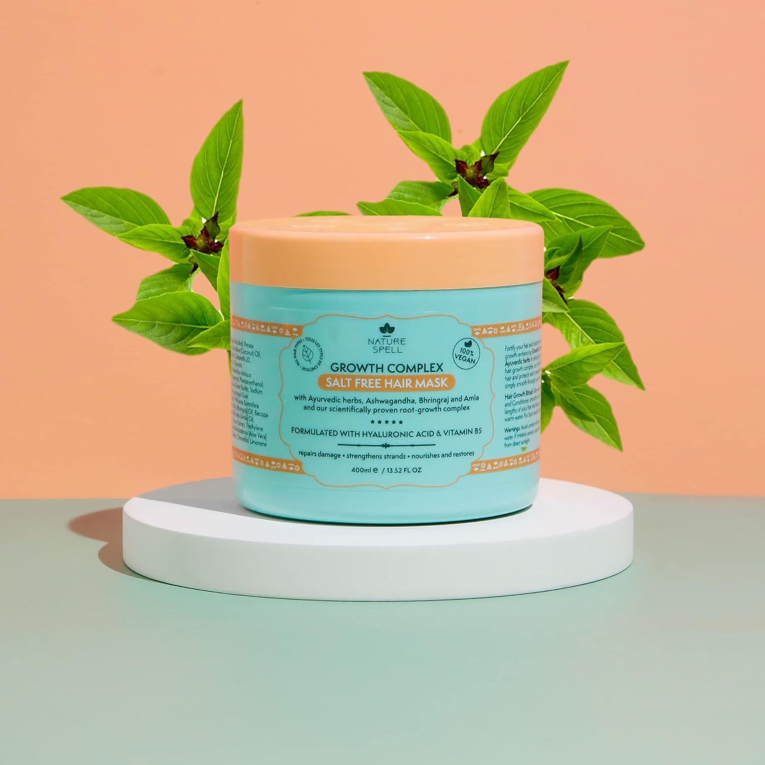 Nature Spell Hair Mask for Hair Growth 400ml – Infused with Ayurvedic Herbs – Stimulates Healthy Hair Growth – Salt Free – Suitable for all Hair Types including Dry Damaged Hair – Made in the UK