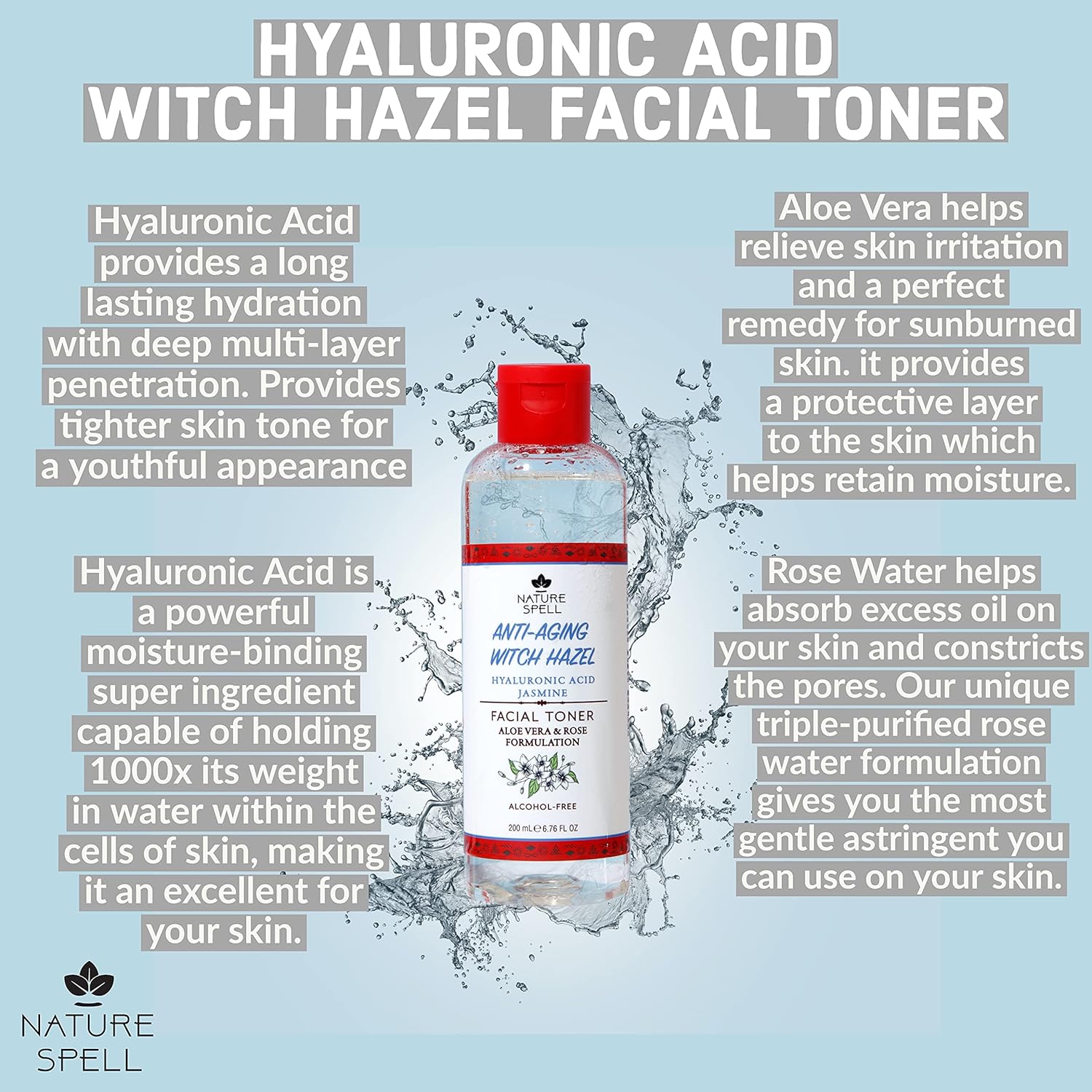 Nature Spell Witch Hazel Facial Toner with Hyaluronic Acid, 200ml, Aloe Vera & Rose Water, Alcohol-Free Formula for All Skin Types, Made in The UK