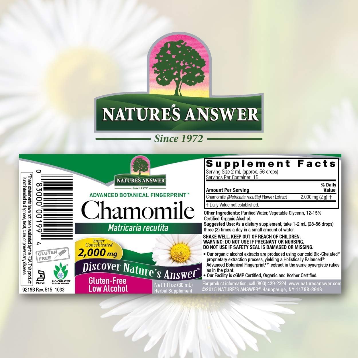Nature’s Chamomile Flower with Organic-Alcohol 2000mg Extract | Mood Support | Digestion Support | Gluten-Free, Non-GMO, Vegan, No Artificial Flavors or Preservatives 30 ml