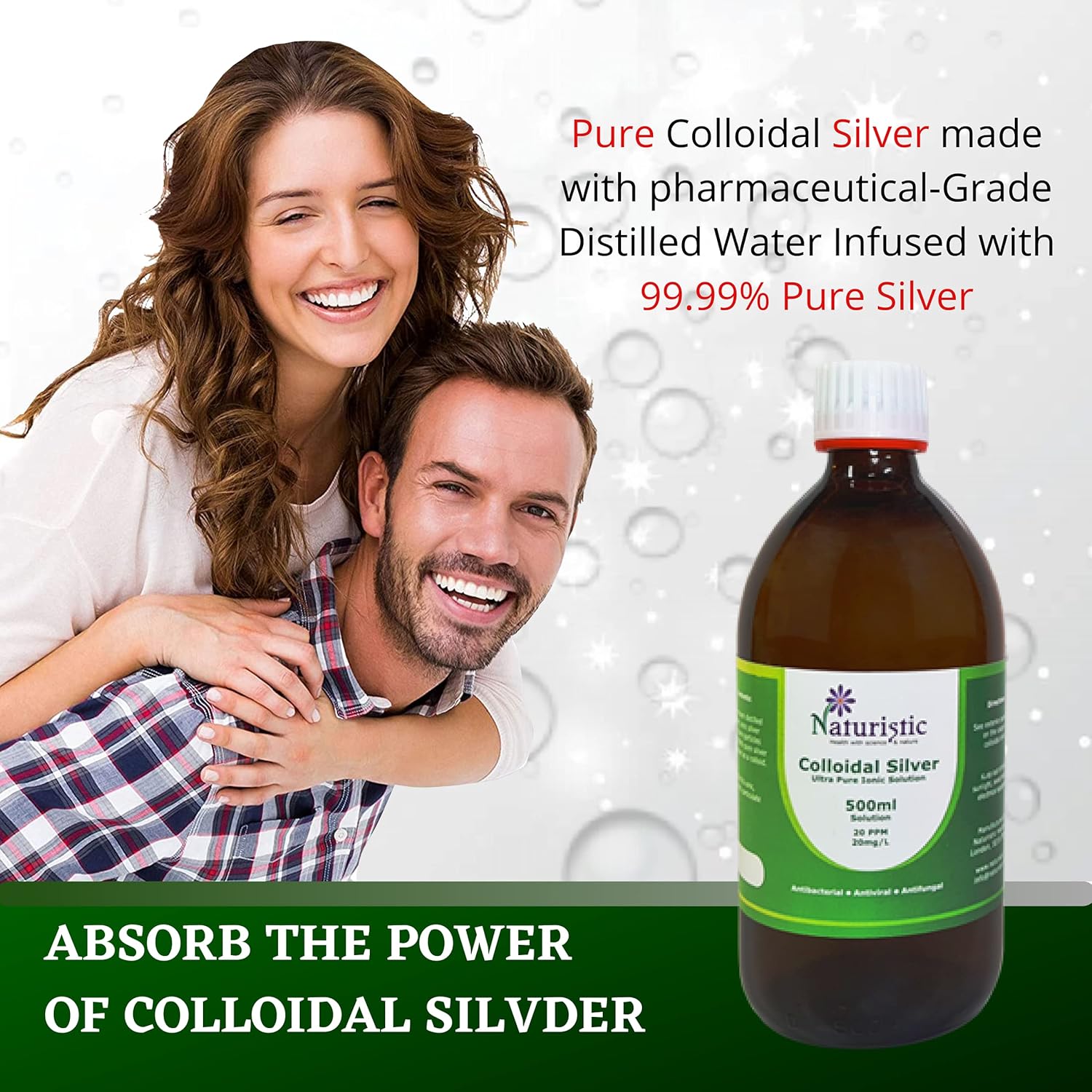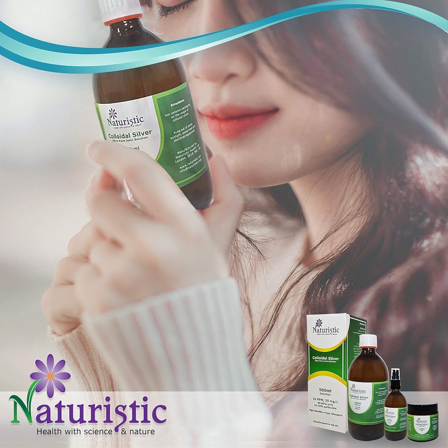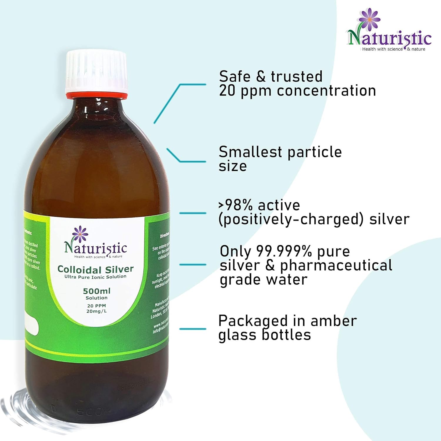 Naturistic Health Premium Colloidal Silver Water ● 20 PPM ● 500ml Amber Glass ● Small Particle Size for Optimal Results ● 100% Natural ● Immune Support colloidal Silver 500ml