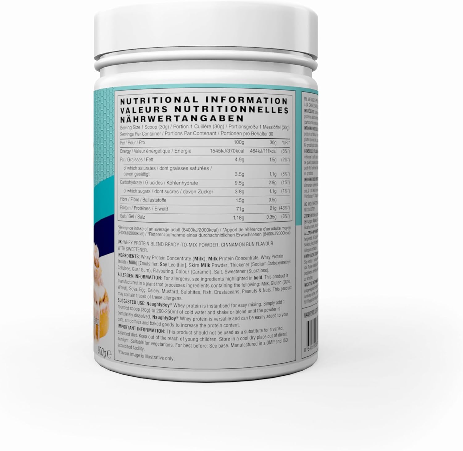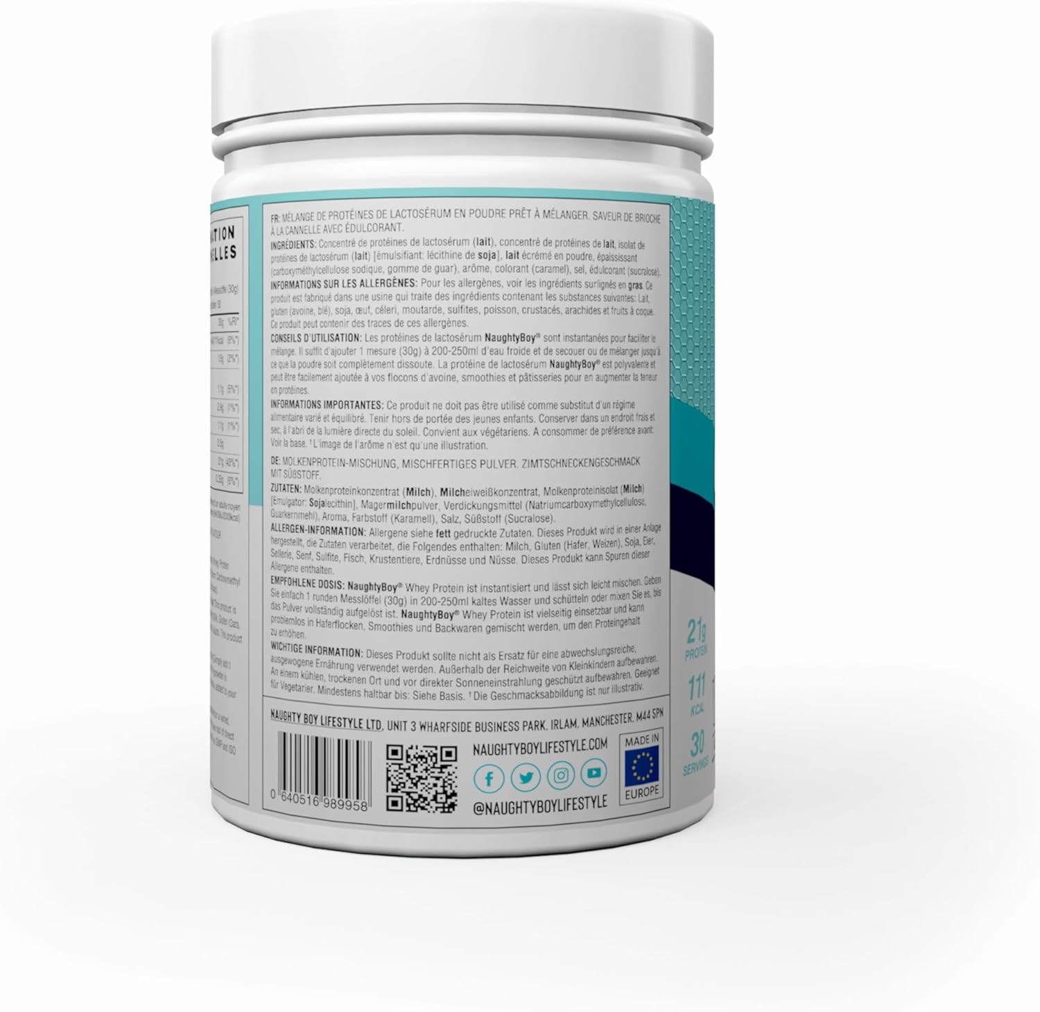 Naughty Boy Advanced 100% Whey Protein Powder. Muscle Building & Recovery Shake with Optimum Taste & Mixability. Low Sugar. (Cinnamon Bun, 900 g)