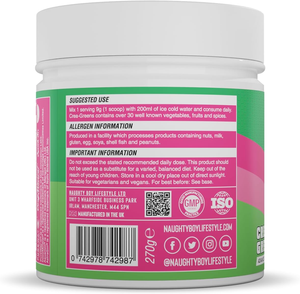 NaughtyBoy Crea-Greens Also tastes AMAZING, Add 1 scoop (9g) to 200ml of ice cold water and consume daily.