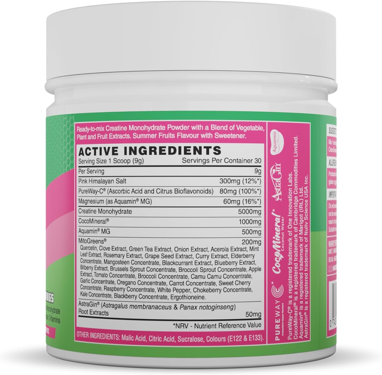 Naughty Boy Crea-Greens Powder, Creatine, Super Greens and Electrolytes. Boosts Performance, Health, Immune System and Hydration. Amazing Taste, Suitable for All Adults 270g (Summer Fruits)