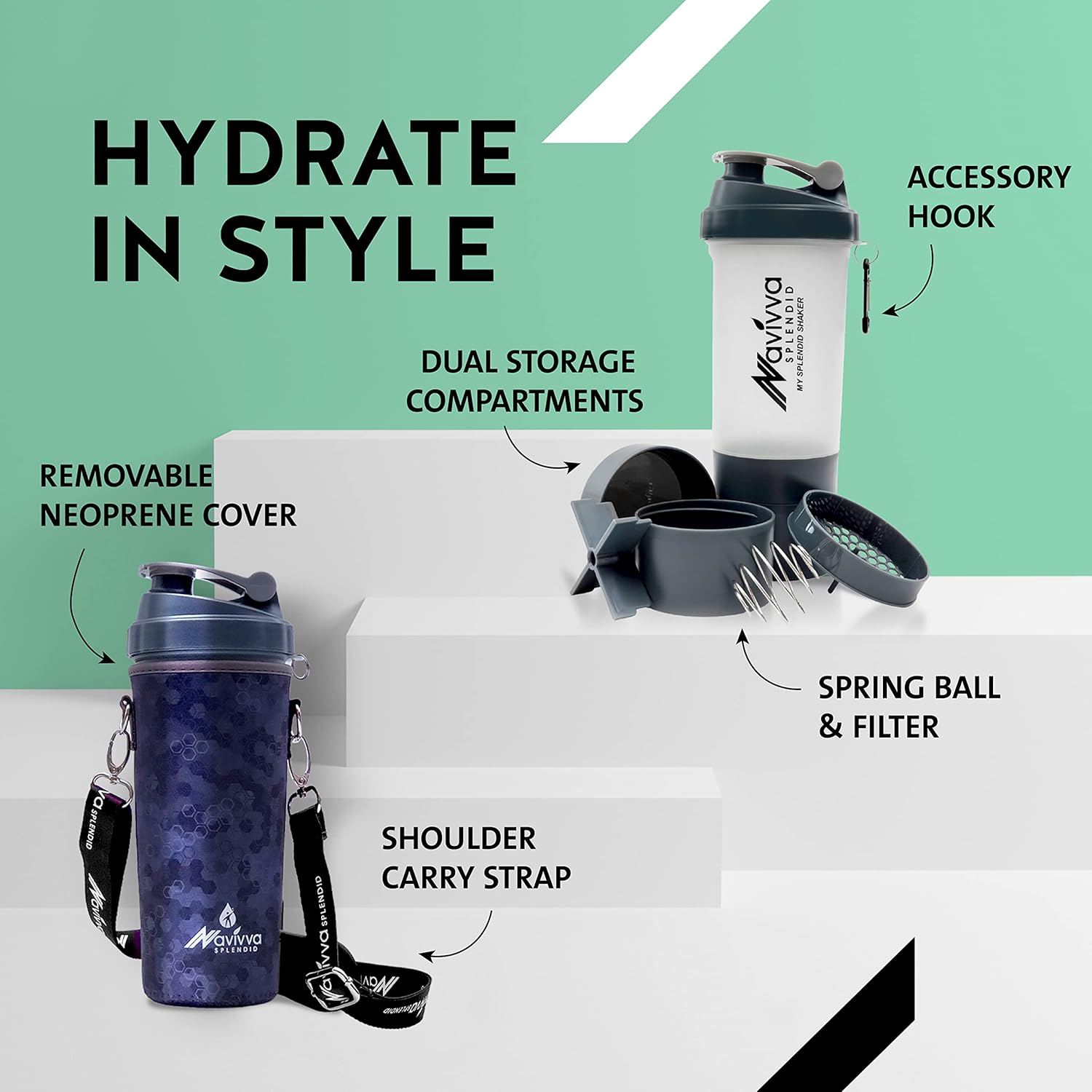Be the first to review “NAVIVVA SPLENDID Protein Shaker Bottle in Neoprene Cover with Mixing Ball and Storage, 600 ml, Gym Blender Bottle & Drinking Bottle – portable, great for mixing on the go (Grey Digital)”
