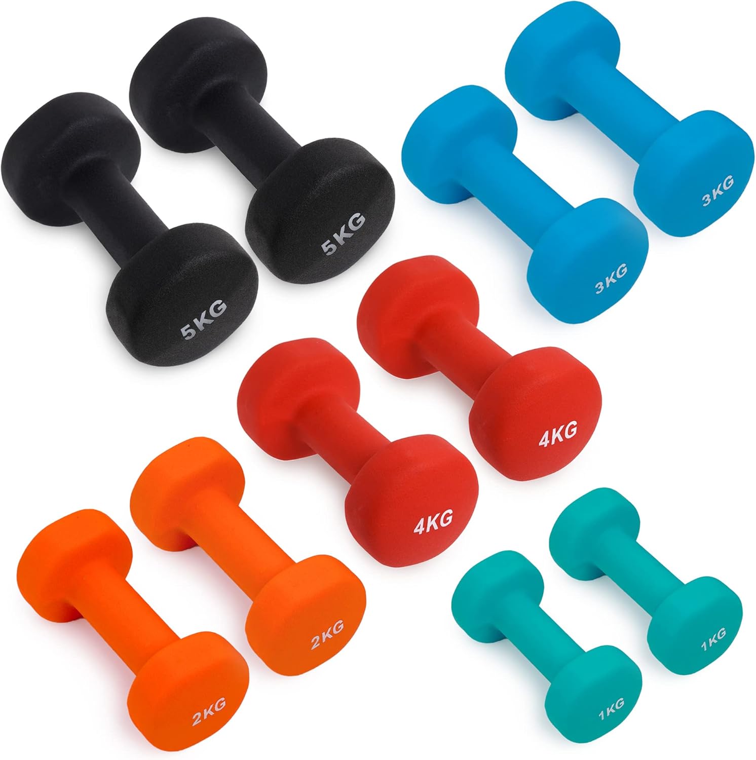 Neoprene Coated Cast Iron Dumbbells for Home Exercise, Pilates, Gym, Cardio, Strength training equipment for men, women & kids, Dumbbell Weights Set in 1kg 2kg 3kg 4kg 5kg Pairs by Nordfit