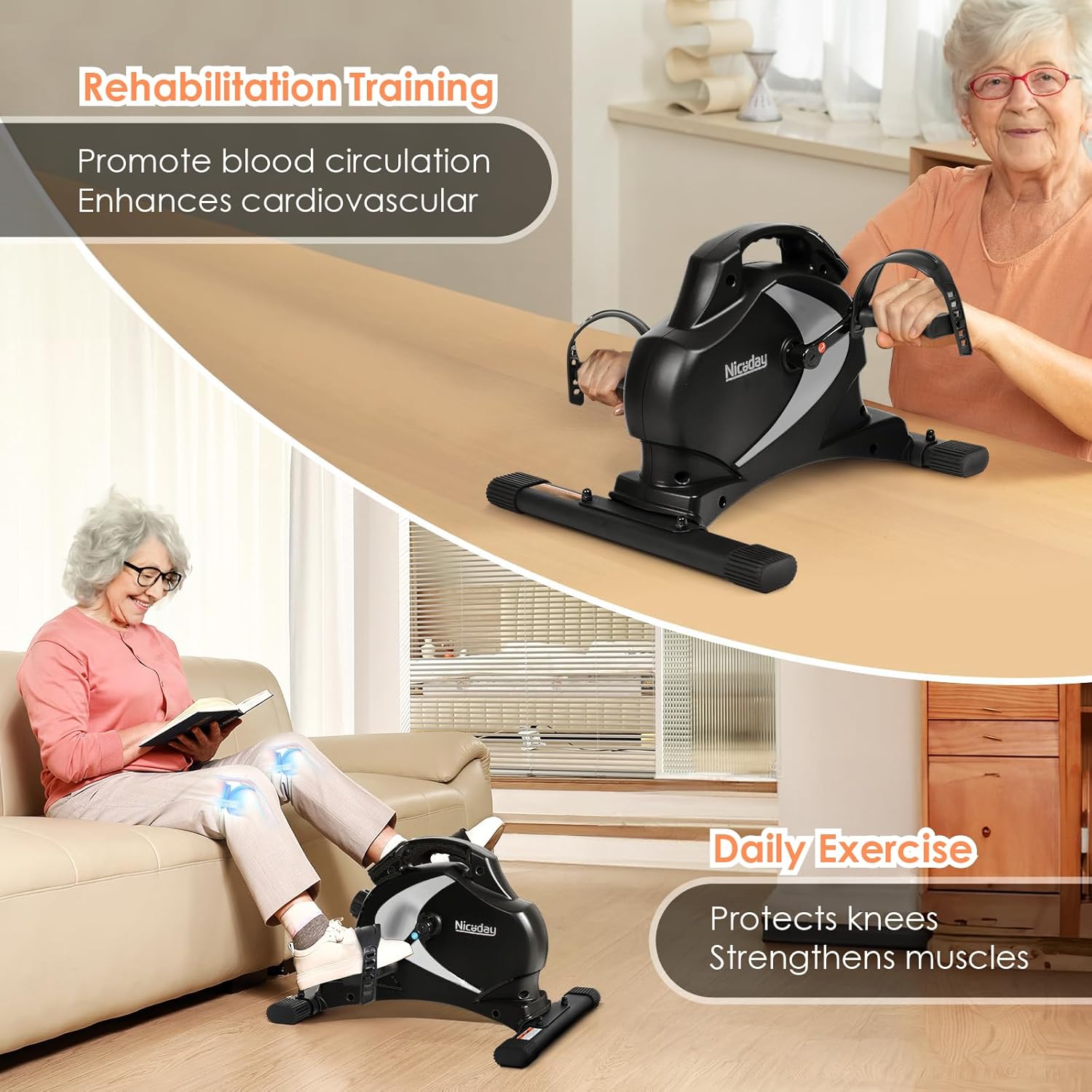 Niceday Mini Exercise Bike, Foot Pedal Exerciser, Under Desk Bike, Desk Pedal Bike, 8 Magnetic Levels Resistance, Quiet and Smooth, LCD Monitor, Pedal Machine for Arms Legs, Workout Equipment for Home