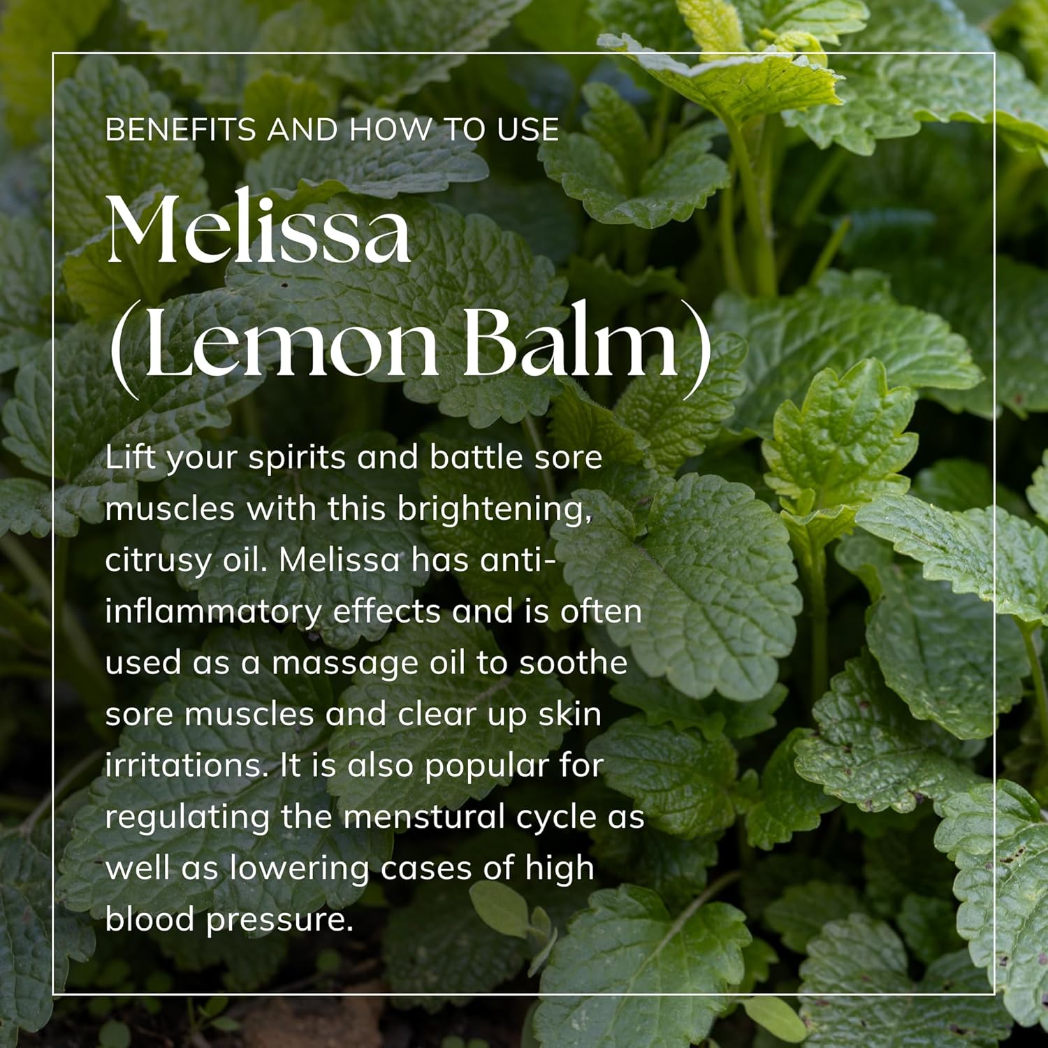💛 MELISSA (LEMON BALM) ESSENTIAL OIL BENEFITS: Our 100% pure & natural Melissa (Lemon Balm) Essential Oil has a brightening and citrusy scent. Melissa oil is renowned for boosting moods, through its uplifting and calming qualities. It is also popular for its soothing, anti-inflammatory properties.