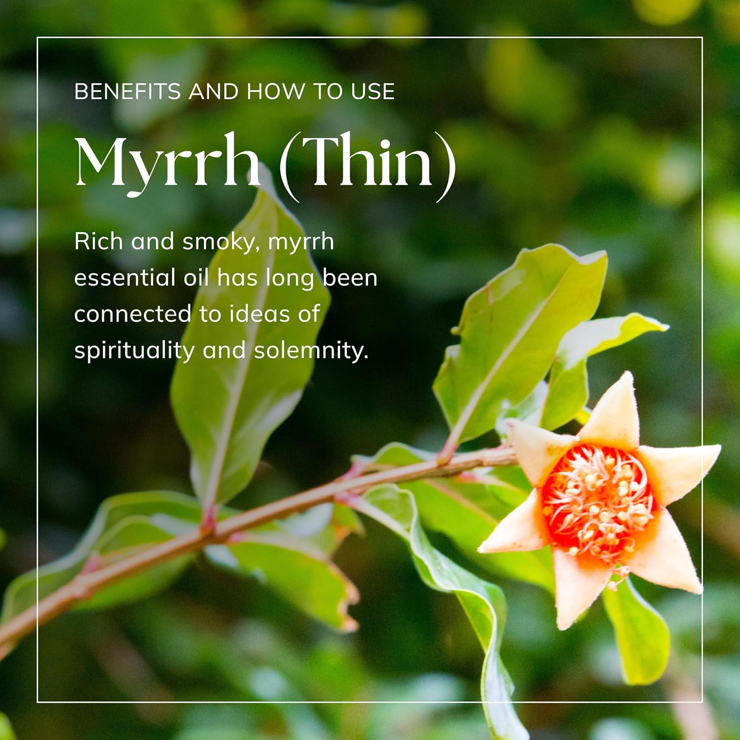 🤎 MYRRH (THIN) ESSENTIAL OIL BENEFITS: Our 100% pure & natural Myrrh Essential Oil is gentle, smoky and rich, and has long associations with spirituality. Gentle to the skin, Myrrh oil works as a great natural moisturiser, leading to brighter-looking skin. It also has a number of health benefits, since it’s an anti-inflammatory oil.