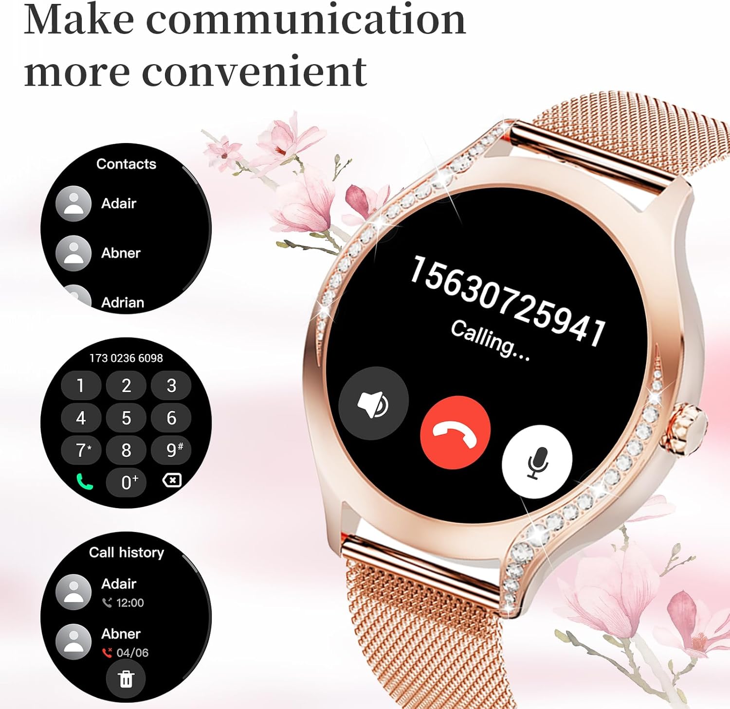 niolina Smart Watch for Women, 1.19” Ladies Diamonds Smartwatches with Bluetooth Call,Female Health Tracking,Heart Rate Monitor,100+Sport Modes Fitness Watch for Android iOS,Rose Gold