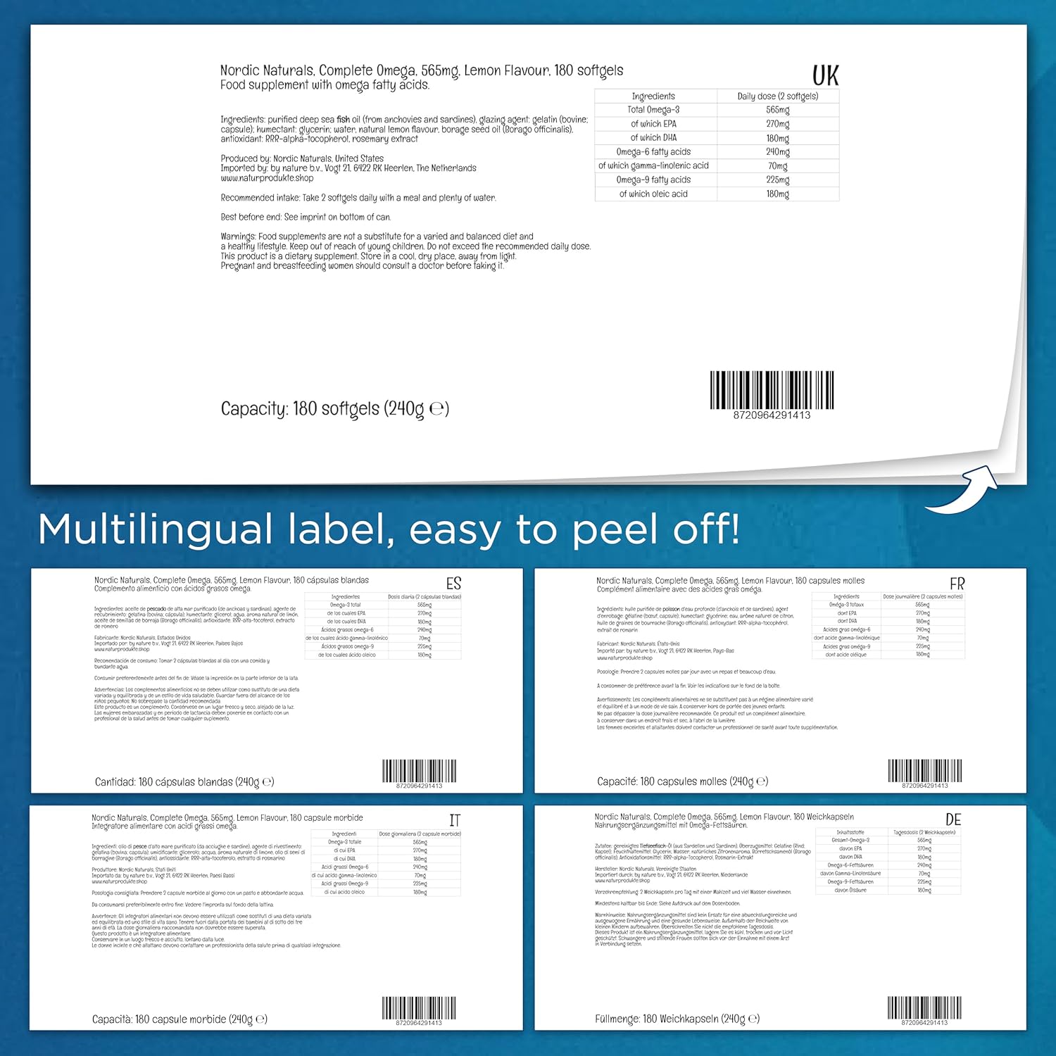 Nordic Naturals, Complete Omega-3, 565mg, with Borage Oil and GLA, 180 Softgels, Lemon Flavour, Lab-Tested, Soy-Free, Gluten-Free, Non-GMO