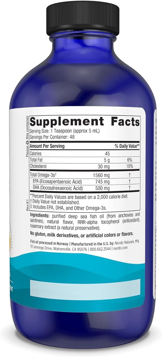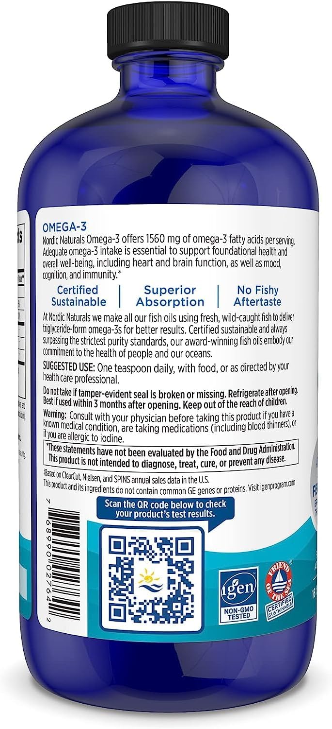 Nordic Naturals Omega-3, Lemon Flavor – 8 oz – 1560 mg Omega-3 – Fish Oil – EPA & DHA – Immune Support, Brain & Heart Health, Optimal Wellness – Non-GMO – 237 ml – 48 Servings