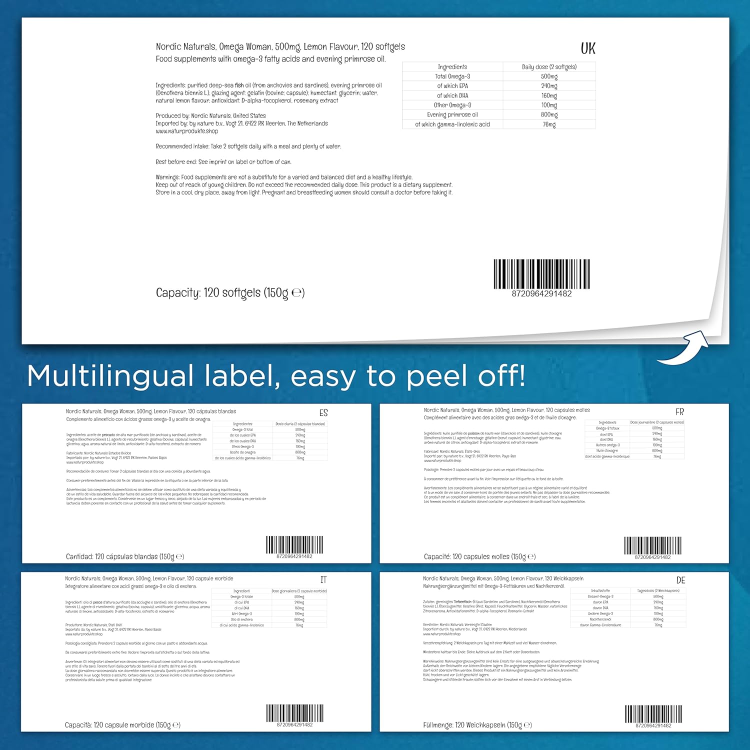Nordic Naturals, Omega Woman, 500mg Omega-3, with Evening Primrose Oil, Highly Dosed, Lemon Flavour, 120 Softgels, Soy-Free, Gluten-Free, Non-GMO