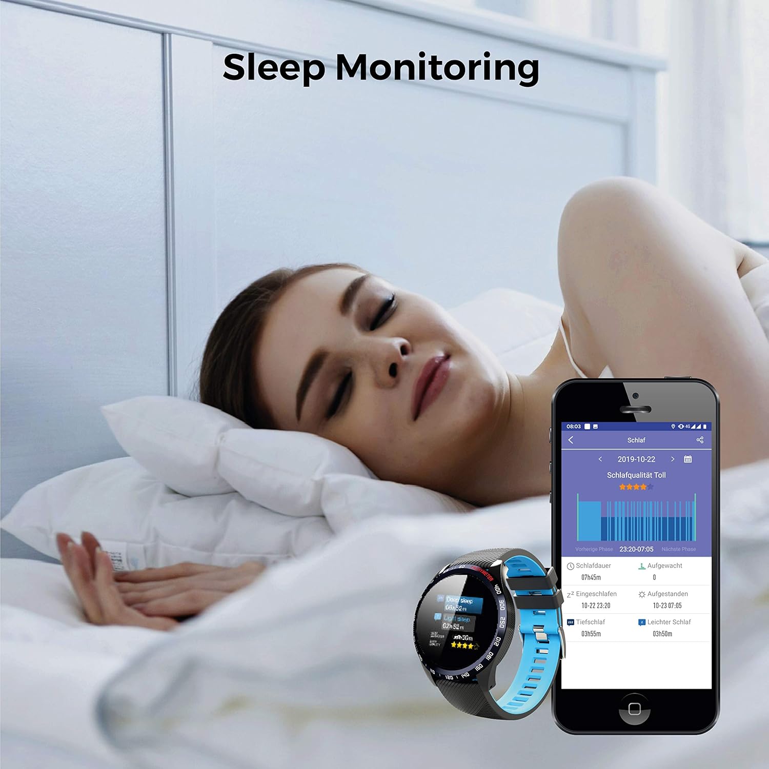Remote control of smartphone cameraPersonalized sleep and fitness goalsPhone finder function to track down misplaced smartphoneEnergy-saving and long-lasting battery