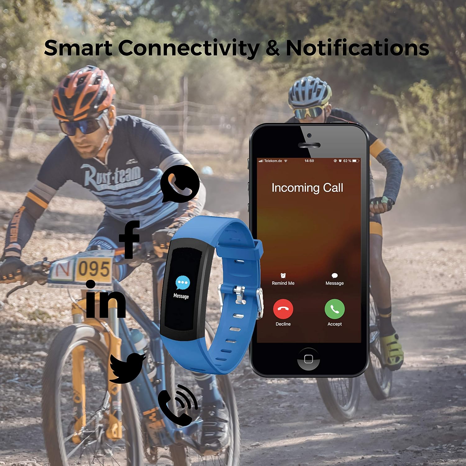 Connect the tracker with your smartphone in order to be notified about incoming calls, SMS and Whatsapp messages as well as notifications from other Apps such as Facebook, Instagram, Twitter etc.