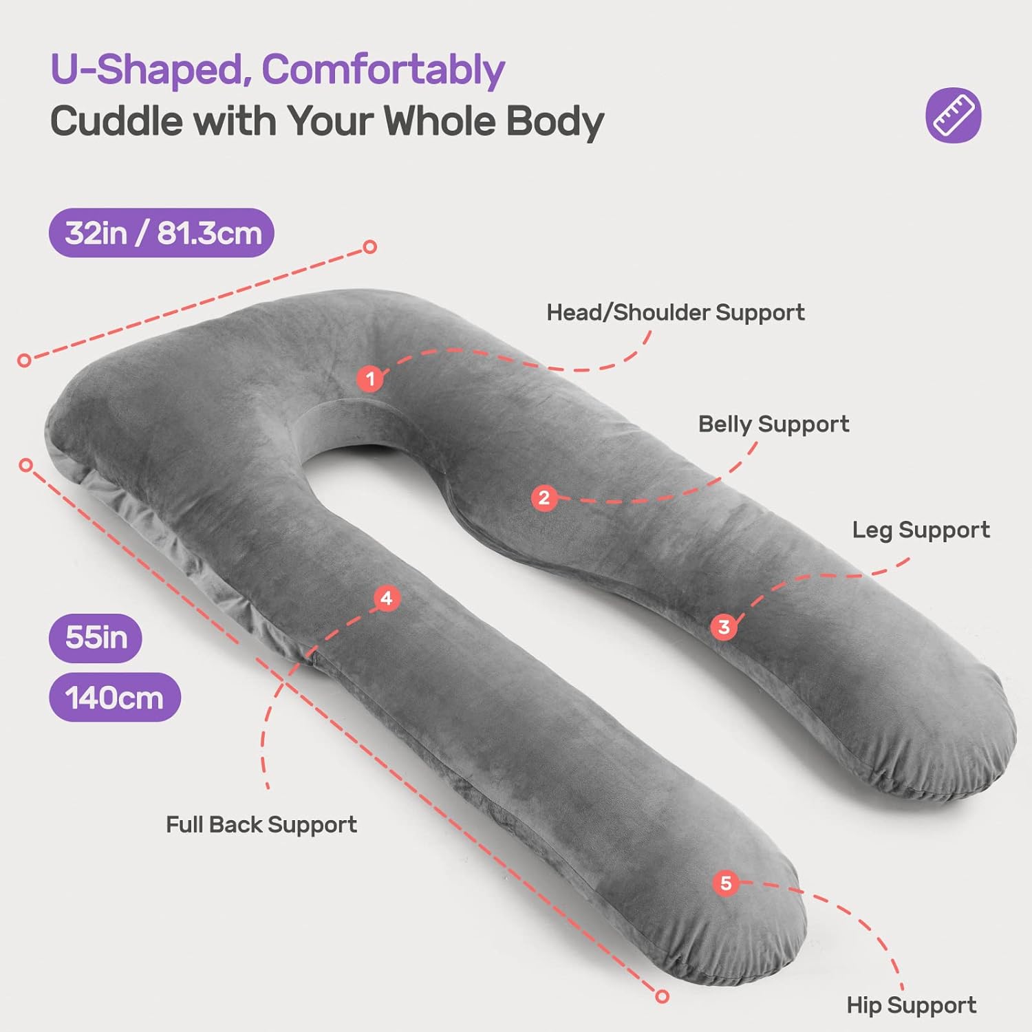 Nuliie Pregnancy Pillow for Sleeping, U Shaped Full Body Pillow Pregnancy Pillows, Maternity Pillow Support for Back, Hips, Legs for Pregnant Women, With Washable Velvet Cover-Grey