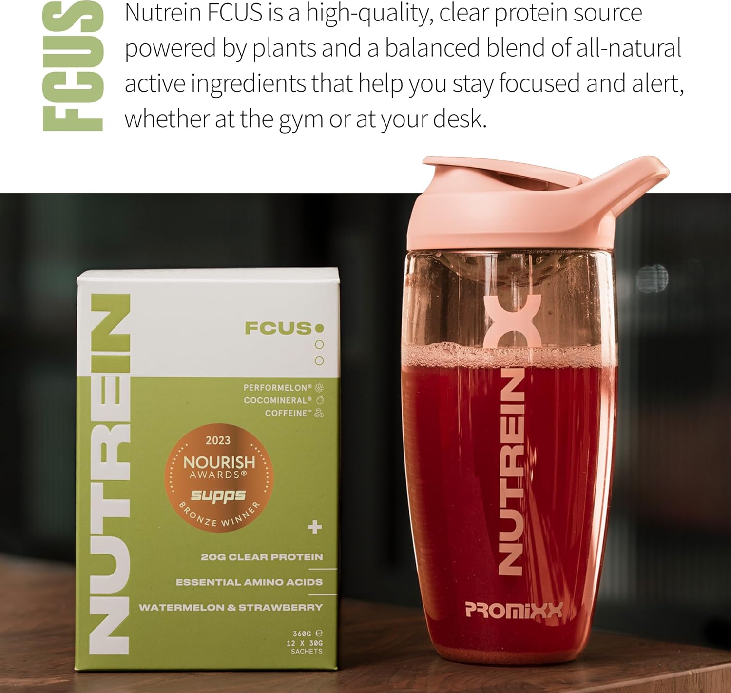 AWARD-WINNING – Recognised for its innovative focus & energy-boosting ingredients; Nutrein’s pre workout FCUS is a Winner of the 2023 Nourish Awards. 20g clear protein per serving.