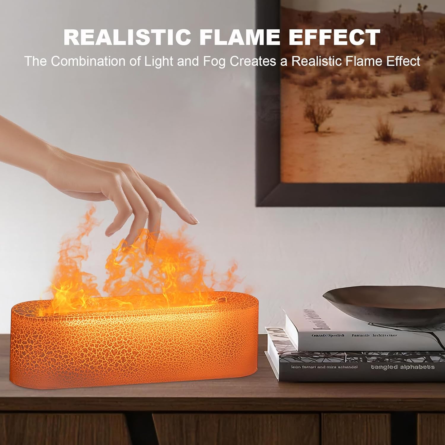 Home Flame Essential Oil Diffuser: looks like the ripples of a volcanic eruption, the upgraded version of the diffuser/humidifier measures 25.1cm*6.7cm*7.5cm, with 7 built-in colour-changing LEDs, which combines light and fog to create a more realistic flame effect, adding a relaxing, soothing and calming ambience to your home, office, spa and more.