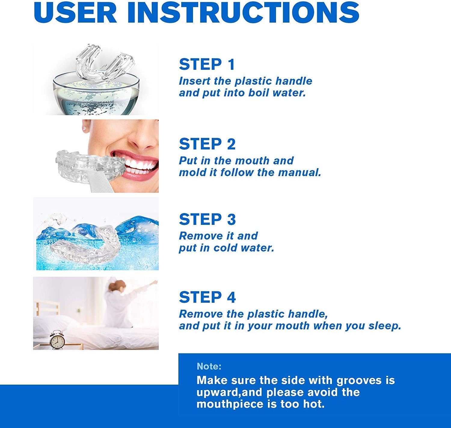 The most perfect match: After heating in boiling water, put it on the teeth and squeeze it to shape, you can get the most suitable custom teeth guard.