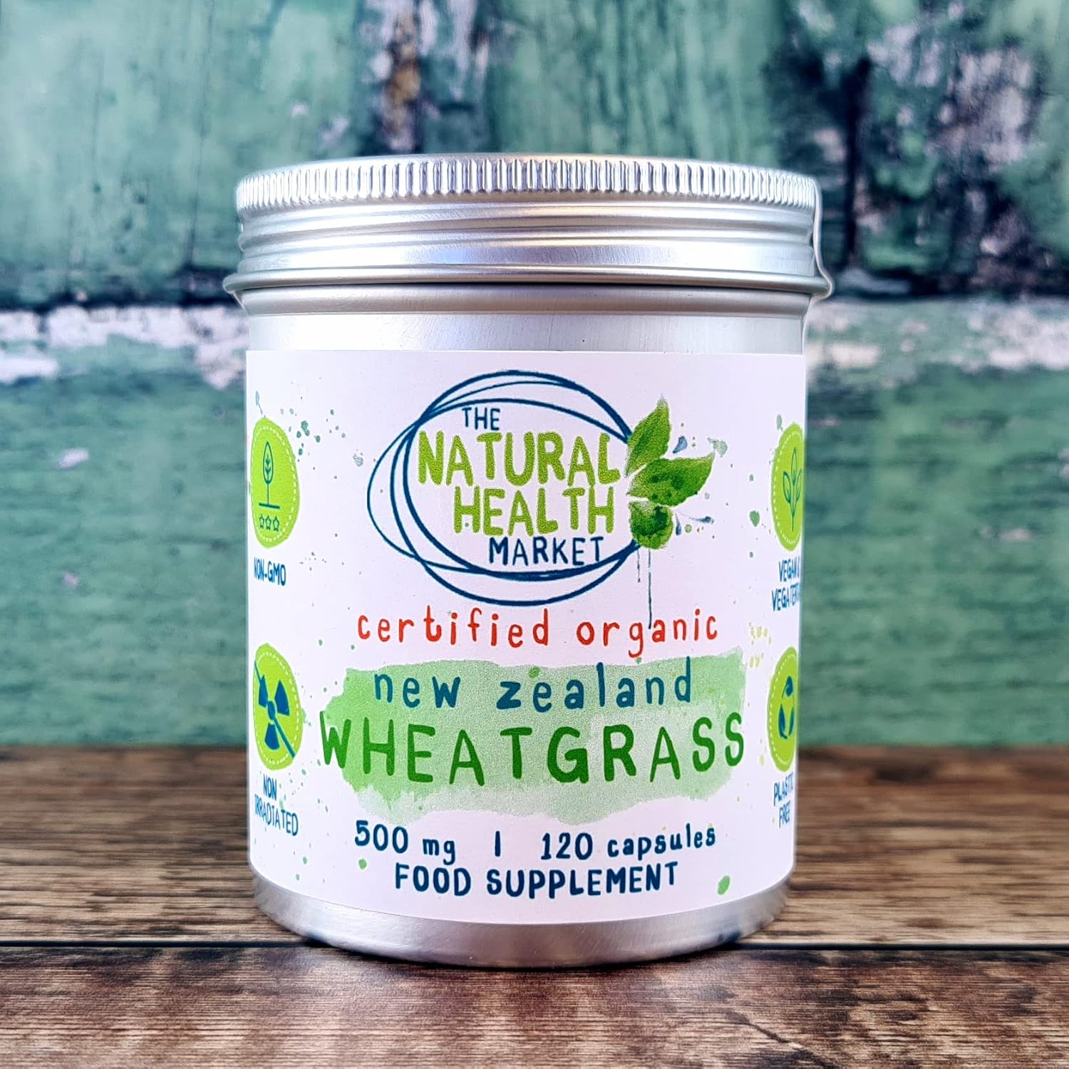Organic New Zealand Wheatgrass Capsules 500mg 120 Capsule Tin – Grown and Processed in New Zealand • Soil Association Certified Organic – Plastic Free