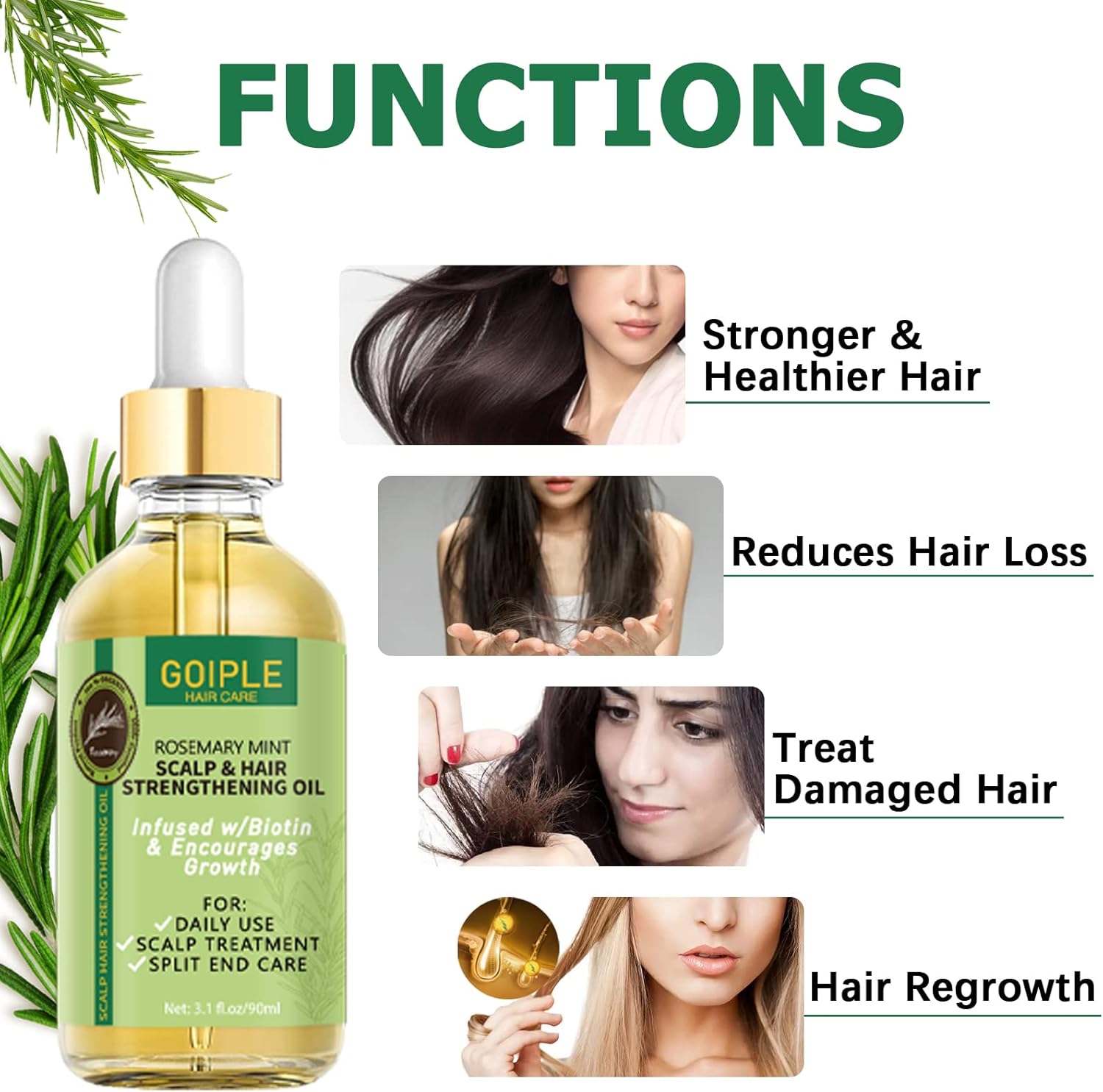 【Nourish your Hair】Rosemary oil for hairdeeply nourishes and moisturizes your hair, keeps your scalp healthy, enhances hair shine, and reduces frizziness, hair loss, and broken hair.