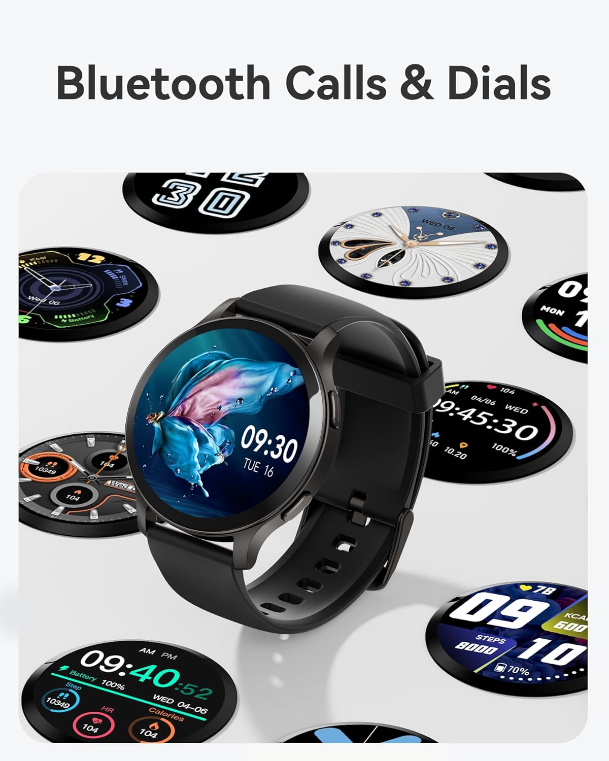 【Bluetooth Call and Message Notification】With the built-in microphone and high-fidelity speaker, you can make and receive calls directly on the fitness watch, keeping you in touch with family or friends anytime, anywhere.It also supports information reminders and social media notifications (Facebook, WhatsApp, Instagram, Twitter, etc.). All notifications are displayed on your wrist and reminded by vibration, so you won’t miss any important calls or messages.