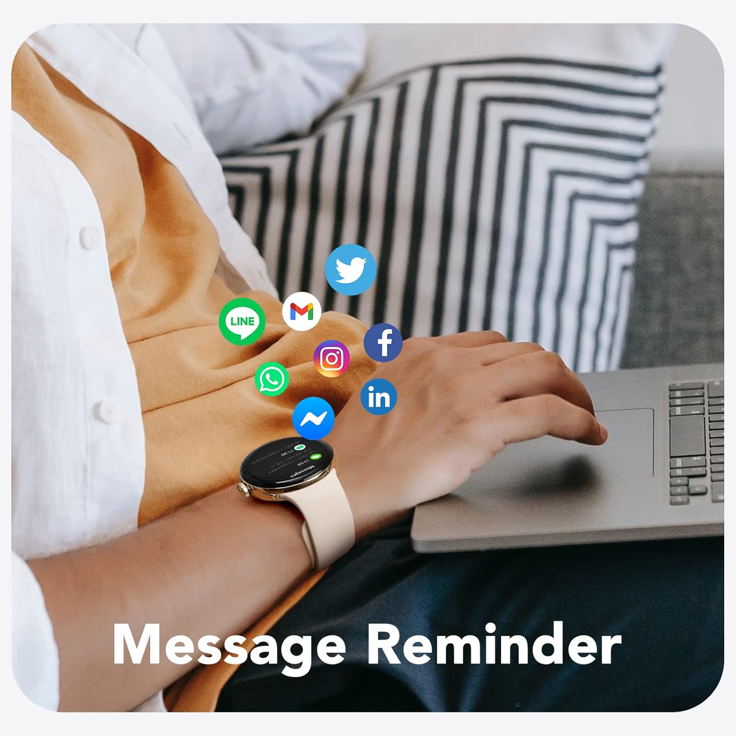 📞【Bluetooth Calling & Message Notifications Smartwatch】Parsonver smart watch for women can make and answer calls, The sounds is clear and you can adjust the volume when making call. Support receiving message notifications when you are inconvenienced by meetings, Also you can get SMS,Instagram,Facebook, Skype, Whatsapp notifications on your wristwatch. Never miss a call or message.(Note: Bluetooth connection distance is 9-10 meters.)