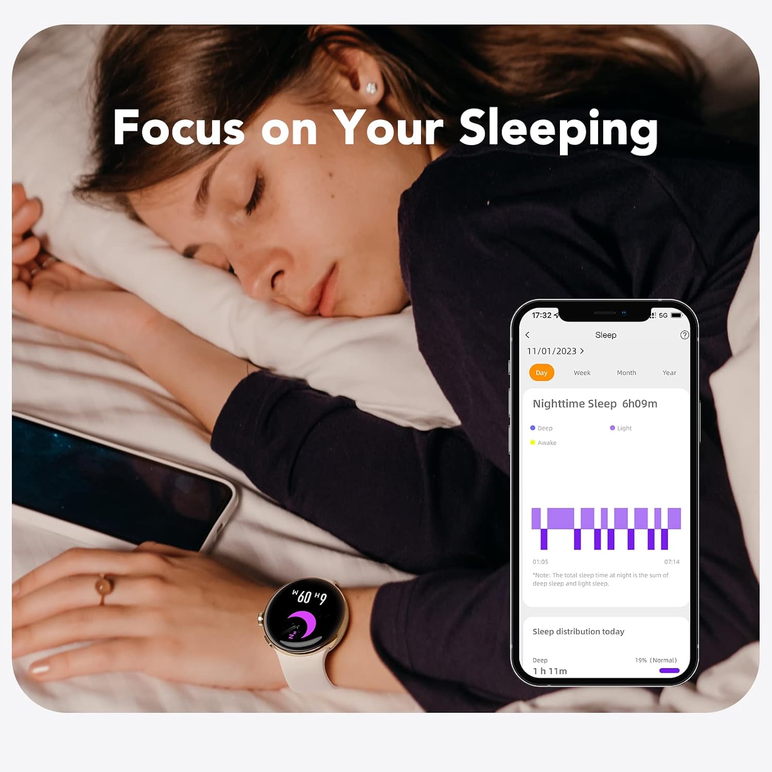 💗【Heart Rate and Sleep Monitor】 Parsonver smartwatch provides 24hr health tracking including heart rate monitoring and sleep monitoring, With PCG optical monitoring technology and intelligent application algorithm, Provide all-around analysis sleep quality such as deep sleep, light sleep, awake time ect. With reminder functions including “Menstrual Cycle”, “Pregnancy Preparation” and “Pregnancy Period”, The Bluetooth calling smart watches is the Best gift for Women!