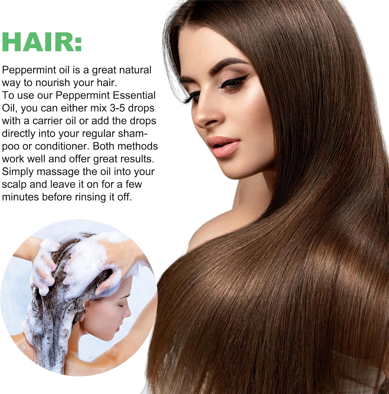 FOR HEALTHY LOOKING HAIR: Peppermint Oil For Hair is often used for its potential benefits in hair care. peppermint oil for hair growth, Diluting a few drops of Peppermint Hair Oil with a Carrier Oil and applying it to your hair may contribute to its potential effects.