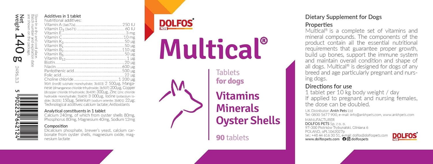 PETS Dolfos Multical 90 tablets Vitamins, Minerals from Oyster Shell for Dogs particularly pregnant and nursing dogs