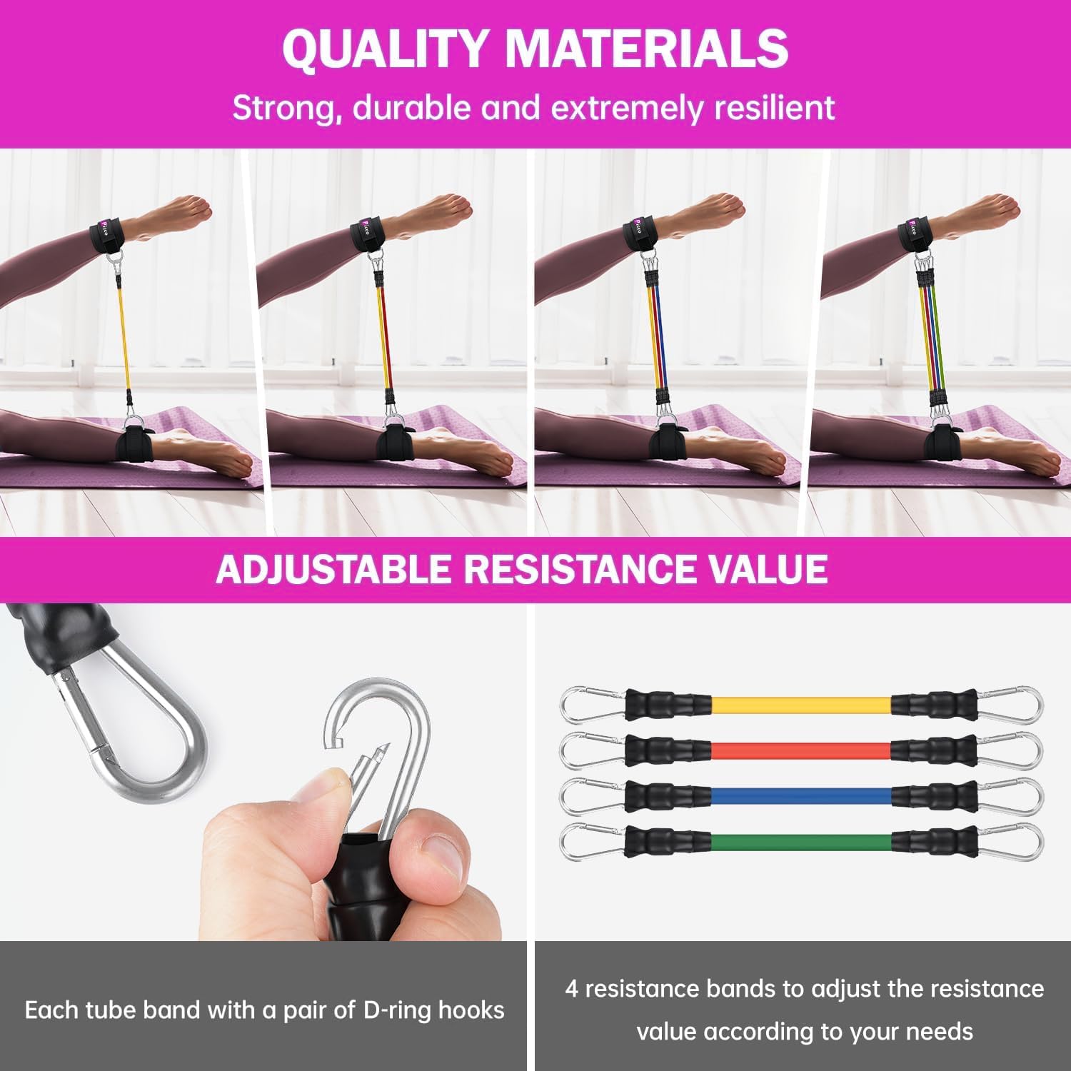 Picco Resistance Bands for Working Out with Ankle Cuffs,Ankle Straps, Ankle Resistance Bands for Leg, Butt, Glutes Workout. Training Equipment for Glutes,Hips and kickback Exercises. 4 Resistance Bands 10 lbs, 20 lbs, 30 lbs and 40 lbs With Carry Bag.