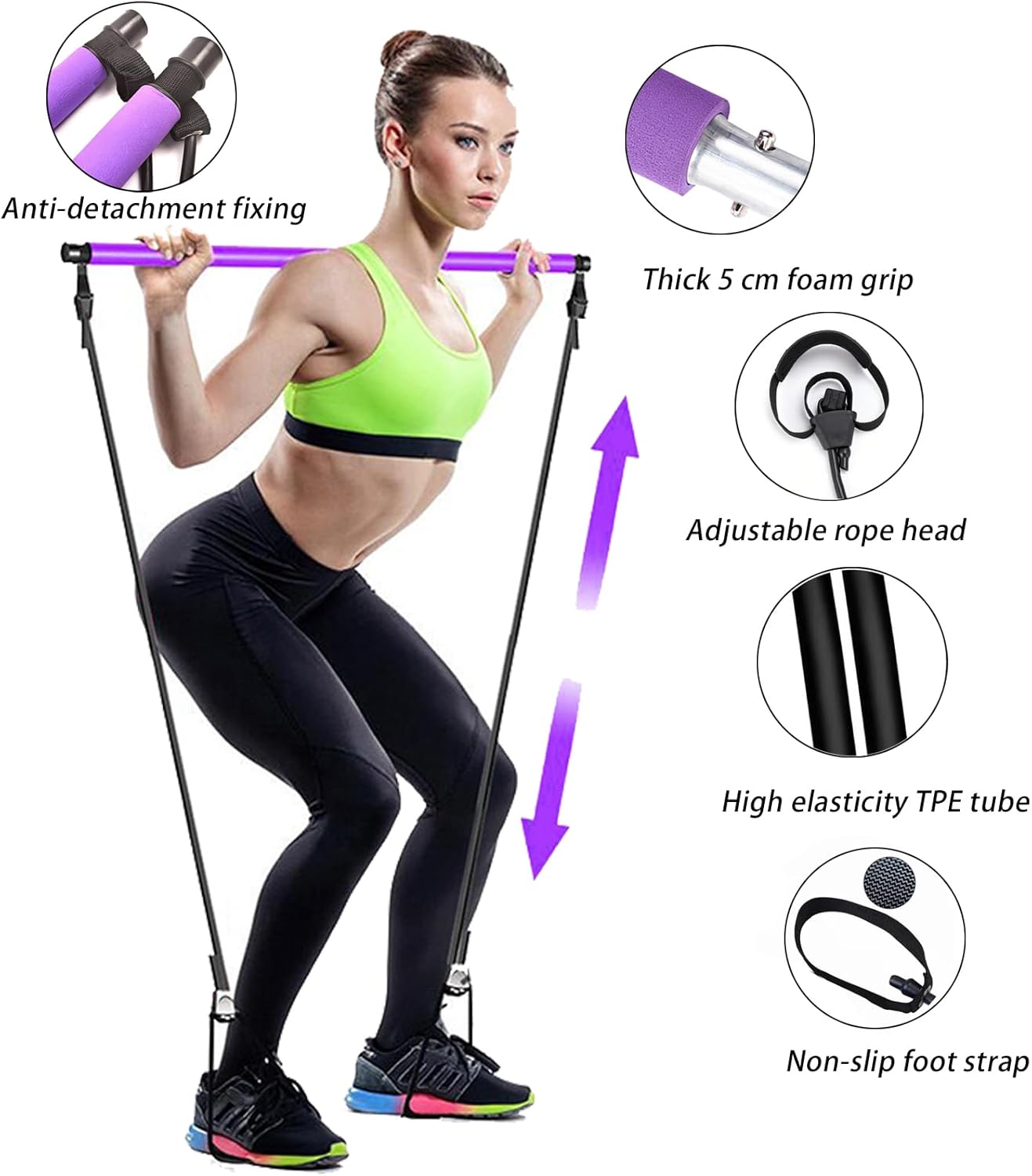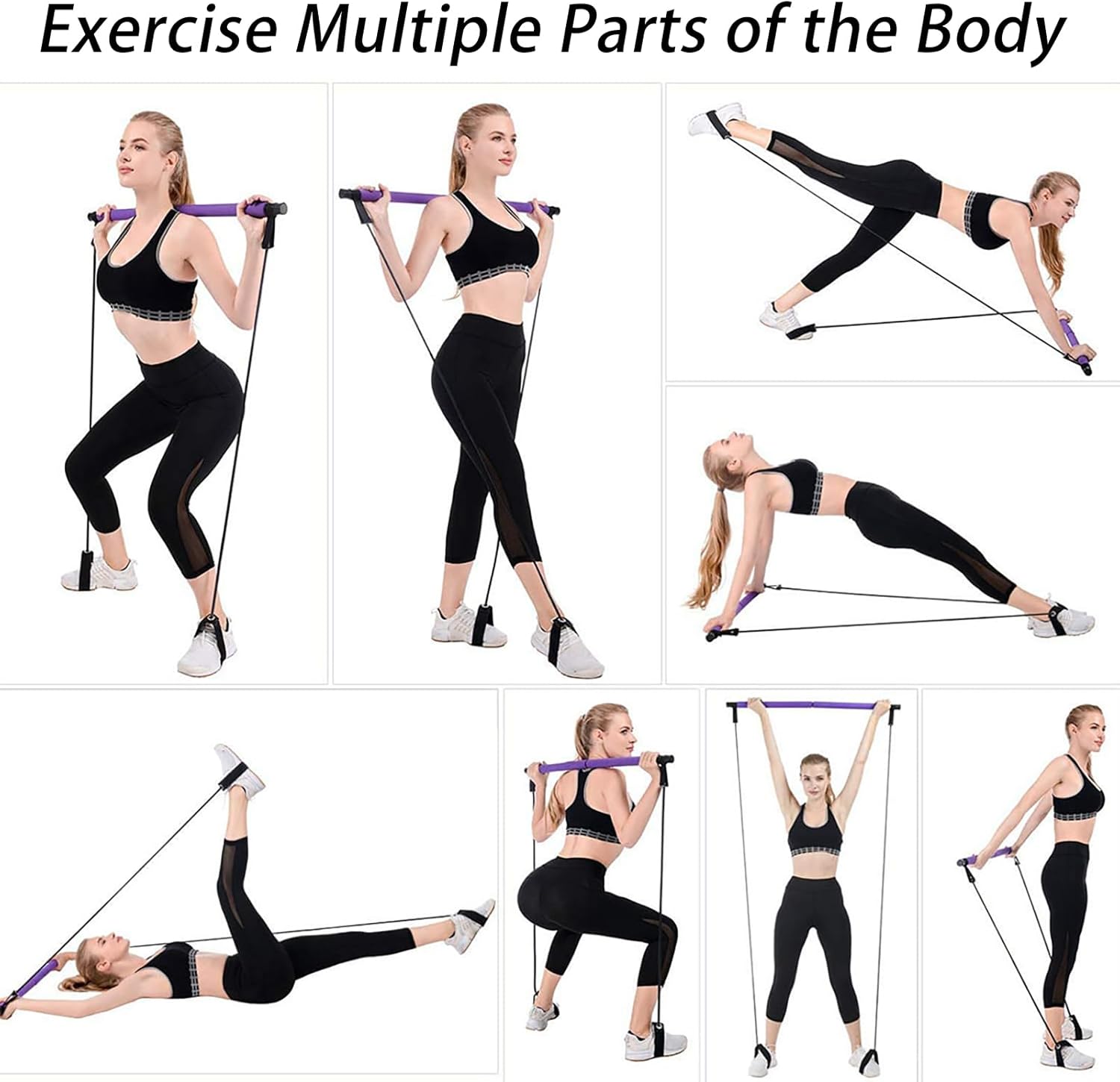 【Easy To Use】-Multifunctional portable home fitness pilates bar set works similarly to barbells, rowers, tension bands, etc. Instead of pulling a rope, use your arms or ankles as a fixation point to work out your whole body, especially to beautify your legs, waist and abdominal curves.