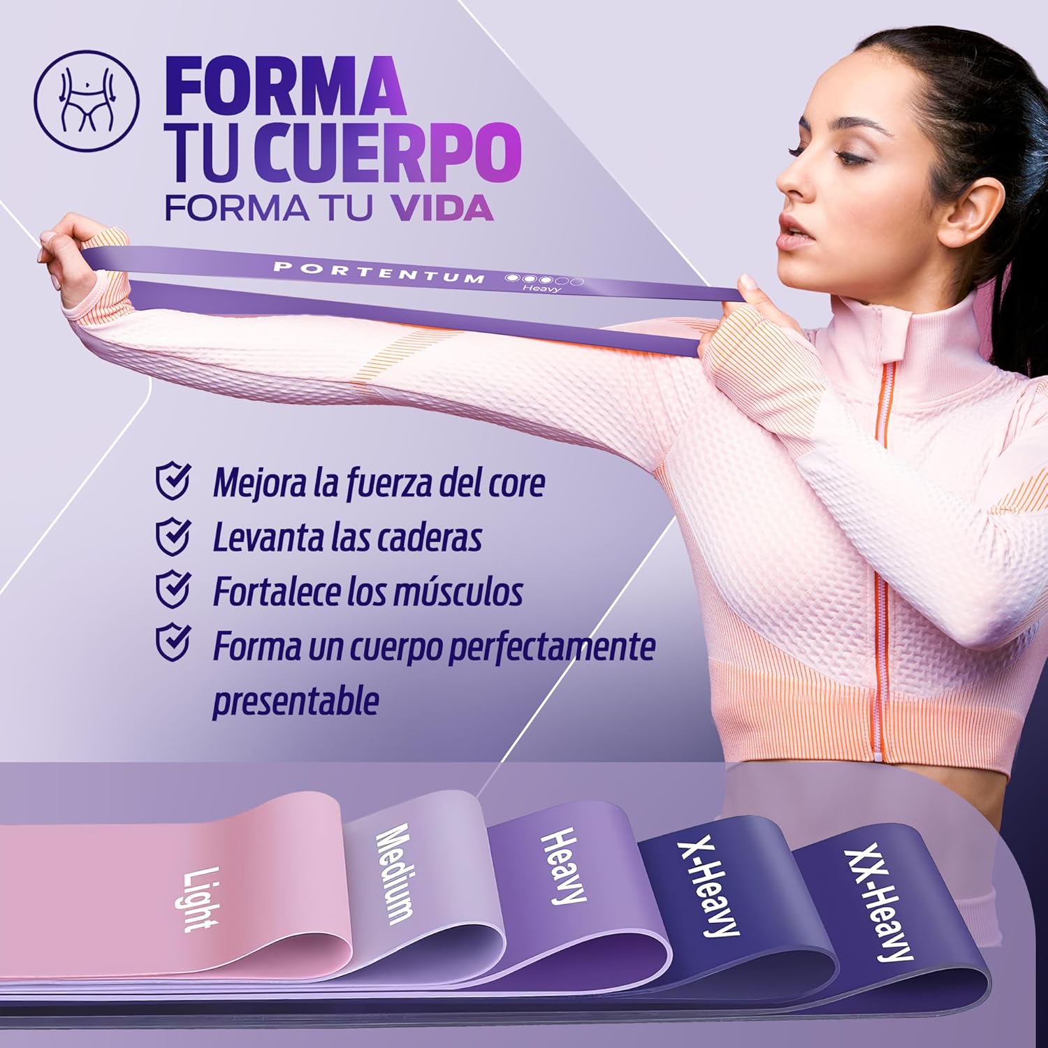 Resistance Bands. 5-level muscle elastic bands. Various colors and resistance levels so you can find the right strength level easily and quickly.