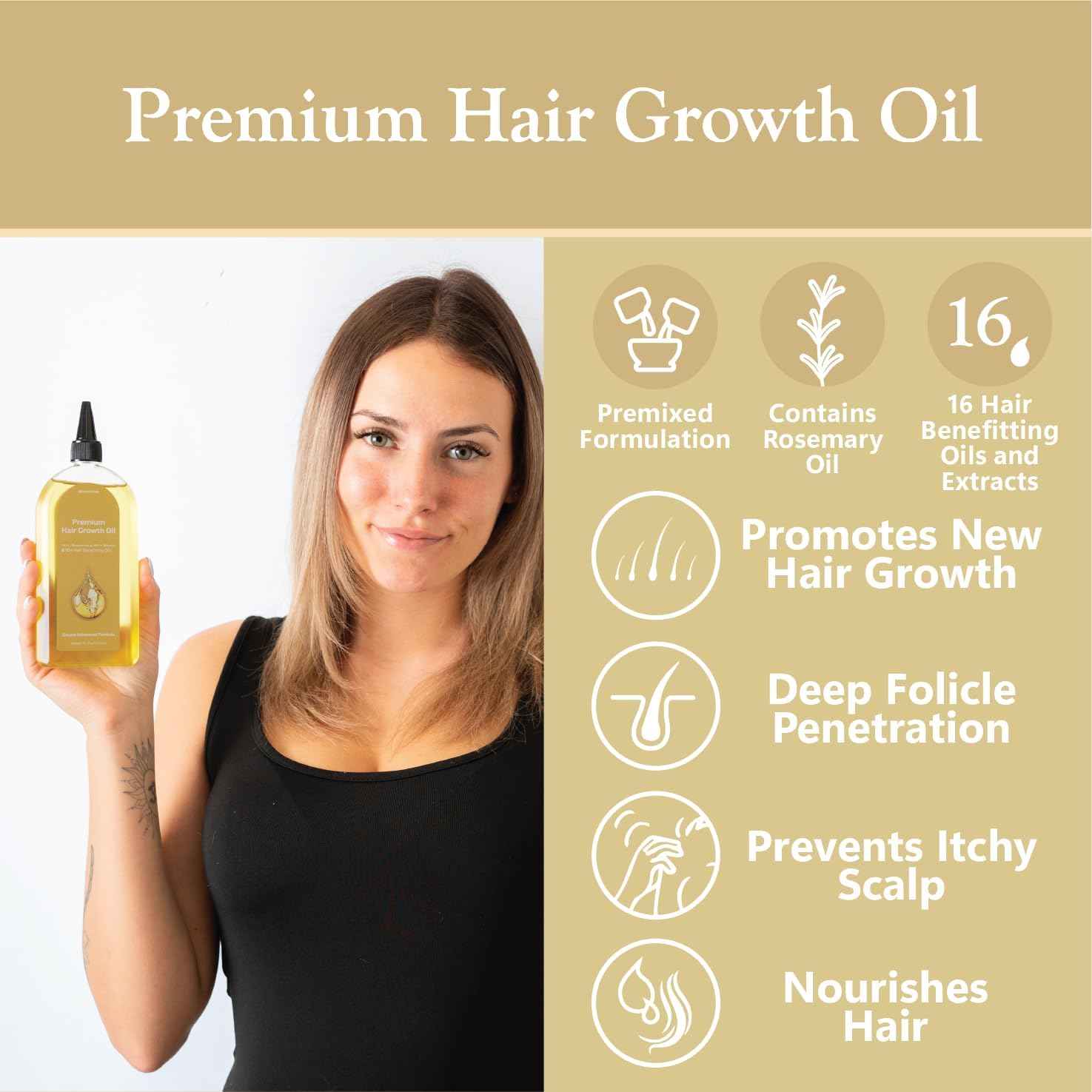 Premium Hair Growth Oil XL 170ml – Rosemary, Biotin, Jojoba, Castor, Coffee, Almond, Argan, Baobab, Peppermint, Ginger & Tea Tree Oil – Hair Growth & Thickening & Loss Prevention – UK Based Brand