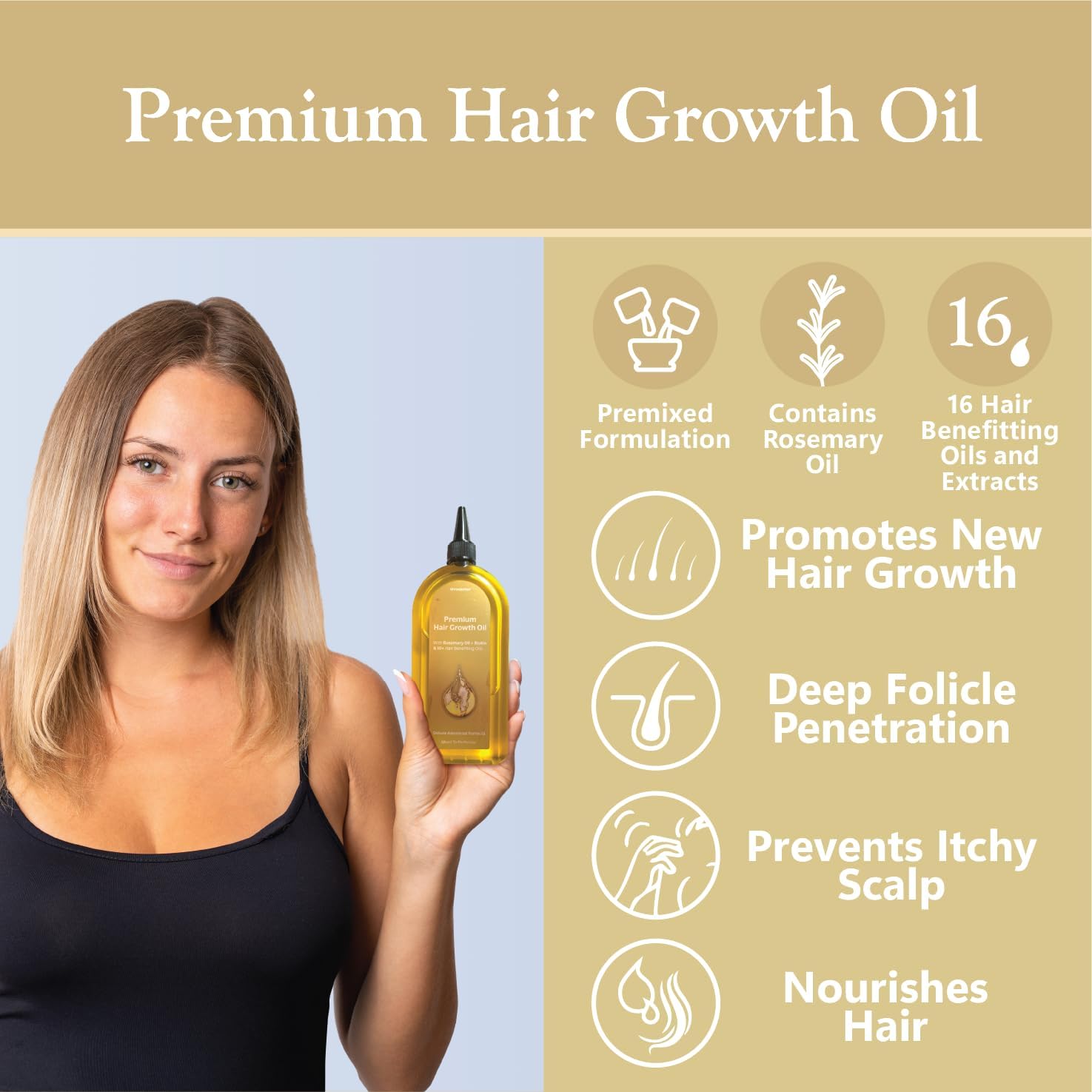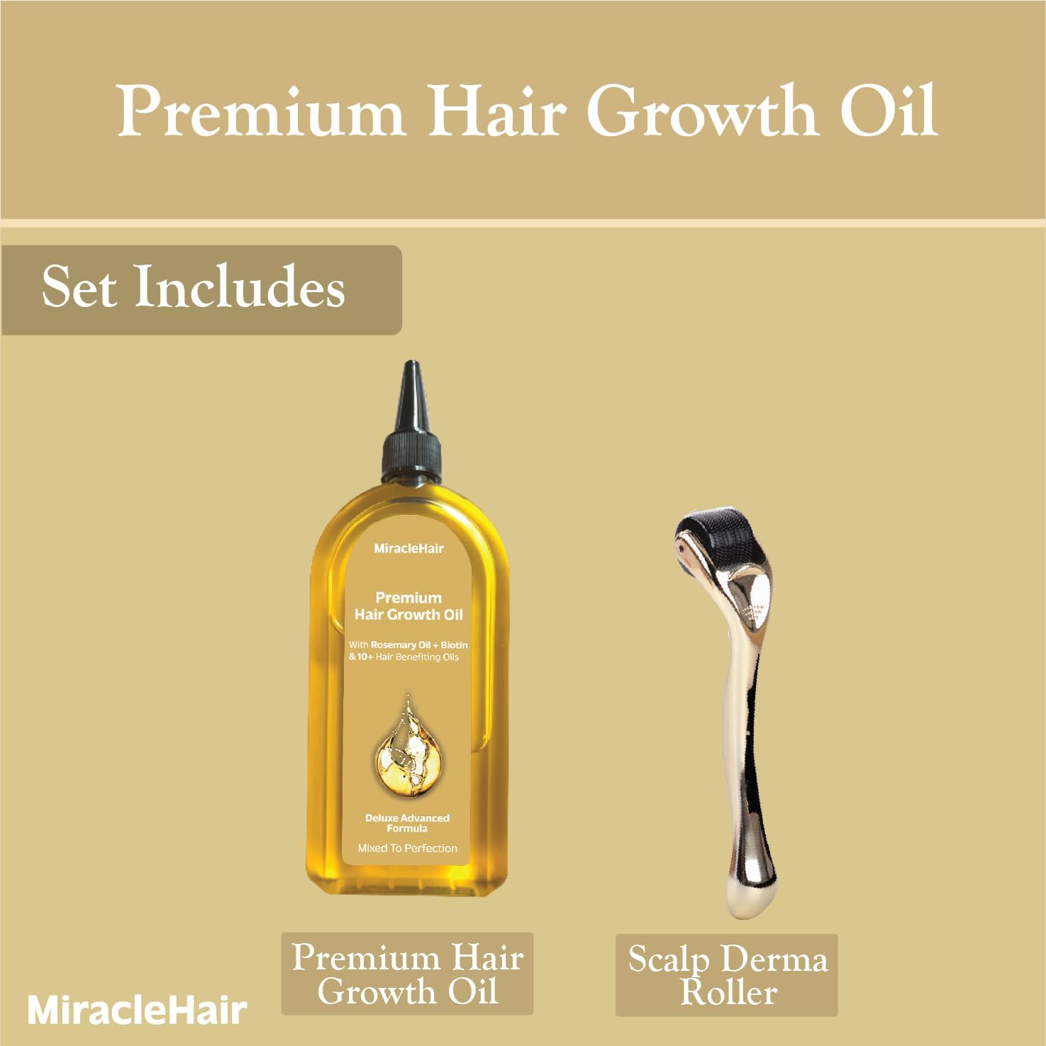 Premium Hair Growth Oil XL 170ml + Scalp Derma Roller – Rosemary, Biotin, Jojoba, Castor, Coffee, Argan, Baobab Ginger & Tea Tree Oil – Hair Growth & Thickening & Loss Prevention – UK Based Brand’