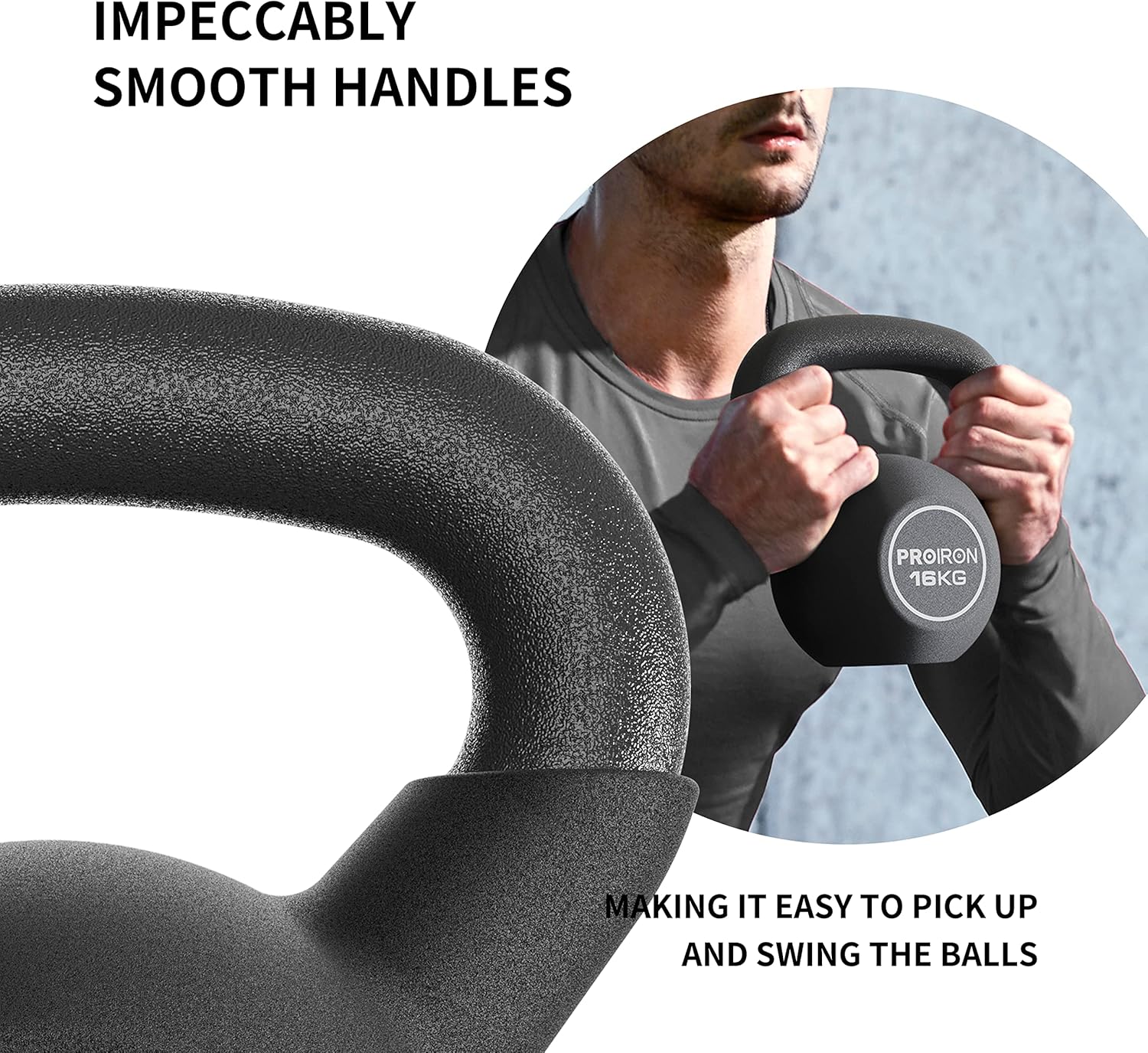 ✅ Kettlebell set. PROIRON kettlebells ranges from 4kg to 16kg, suitable for both beginner and advanced. The range is colour-coded, easy for kettle weight selection
