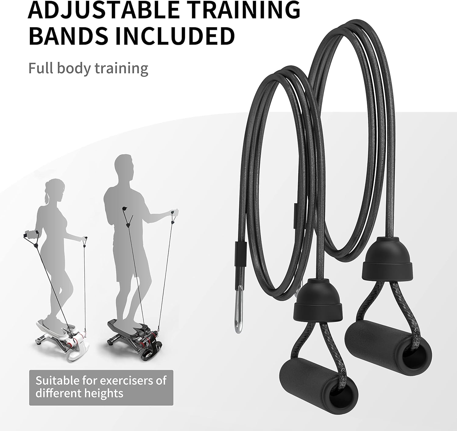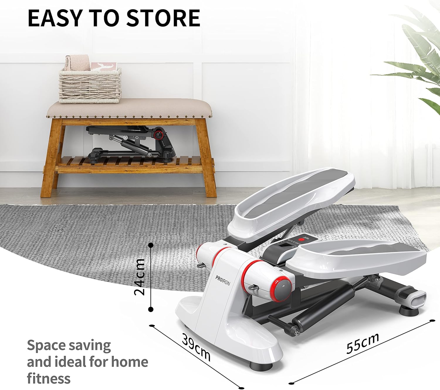 PROIRON Steppers for Exercise, Mini Stepper Machine with Display, Step Exercise Machine with Resistance Bands for Home Workout, Up Down Stair Climber for Leg Arm Full Body Cardio Trainer White Black