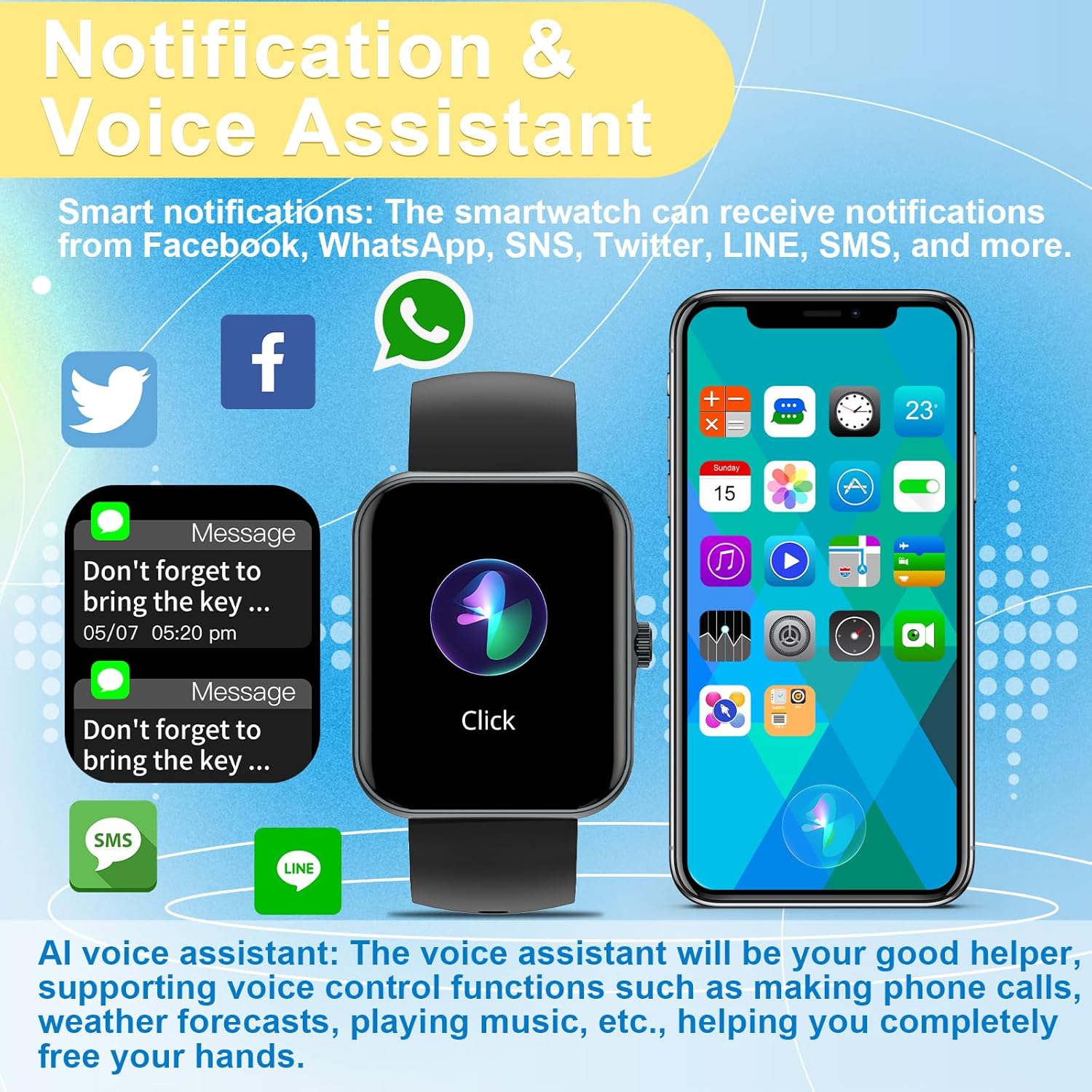 PTHTECHUS Smart Watch for Kids, Fitness Activity Tracker Smart Watch with Bluetooth Call Voice Assistant, Pedometer Sleep, Alarm Clock,100+ Sports Modes, Sport Watch for iOS Android, Black