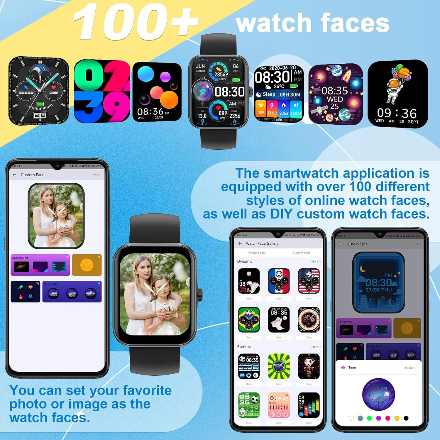 【1.83″ Full Touch Screen】The Boy Girl Smartwatch comes with a 1.83″ screen that offers incredible color depth and exceptional clarity. After connecting with your phone, you can choose from clock faces Or custom settings and adjustable screen brightness make the smartwatch for kids easy to read at sun.