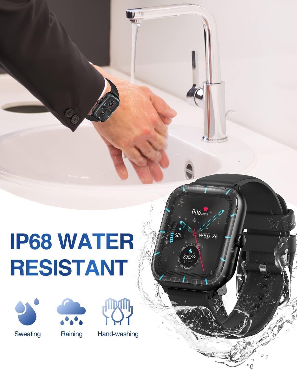 Designed to make your life Better: Our Smartwatch includes practical functions such as Fitness Tracking (Pedometer/Calories/Distance), Heart Rate Monitor, Sleep Monitor, 25 Sports Modes, Blood Oxygen Monitor, two way call (HD speaker/Mic), Call Notifications, SMS and APP Messages (WhatsAPP, Facebook…), Music & Camera Control, 6 levels of Brightness Adjustment, Weather Display, Sedentary & Drink Water Reminder, GPS tracking, Stopwatch, Timer, Calculator, Alarm Clock, and many more!