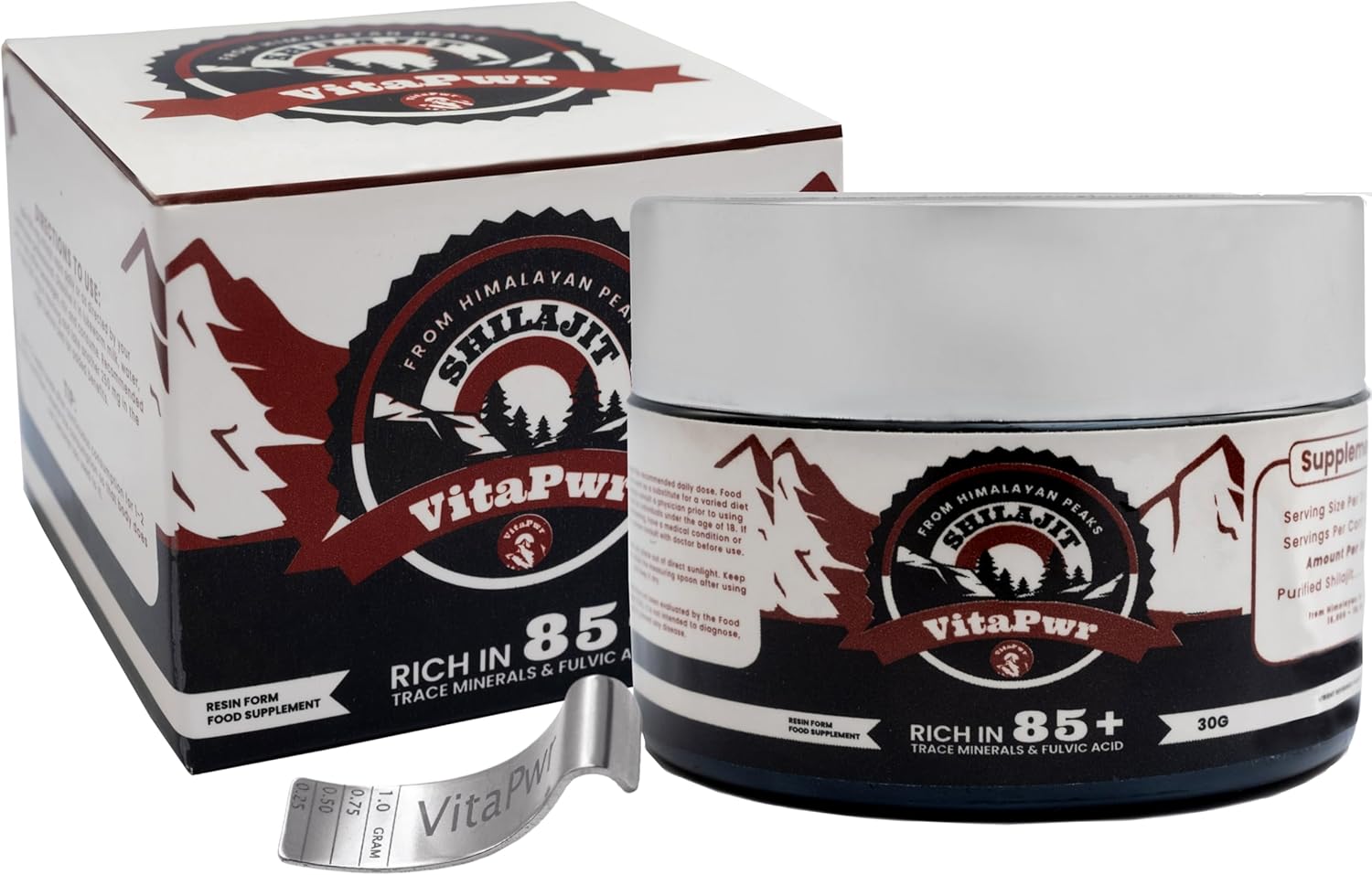 Included Scooper: VitaPwr Shilajit comes with a stainless steel spoon which effortlessly scoops the resin from the jar with precise measurement (250 mg / 500 mg) every time and securely attaches to the rim of your glass, making it convenient to mix into water, tea, or milk for a seamless and enjoyable experience.