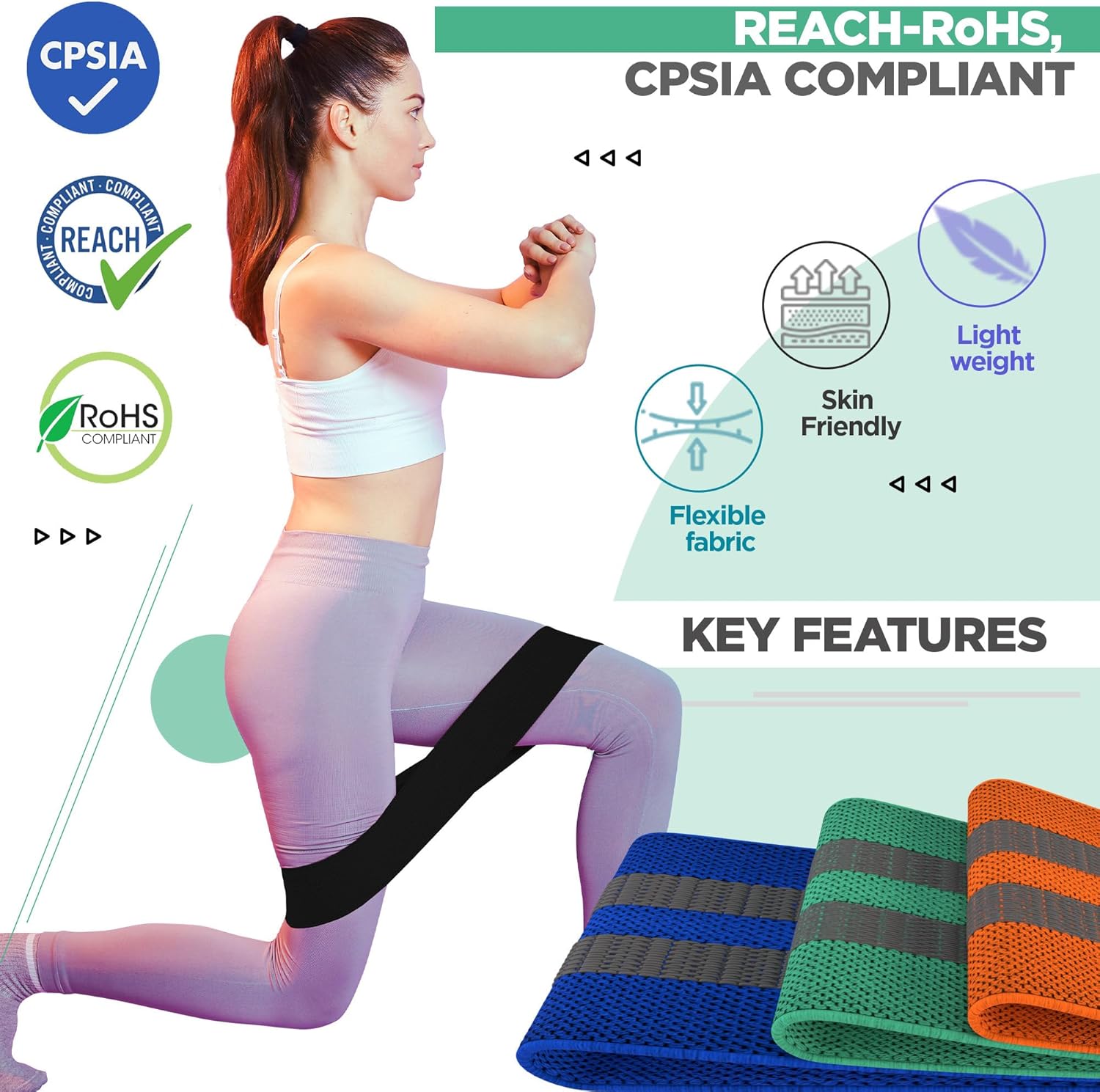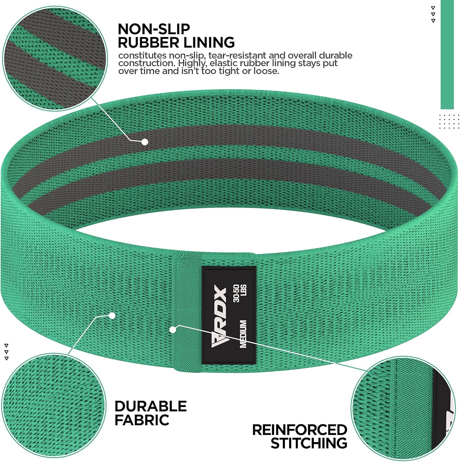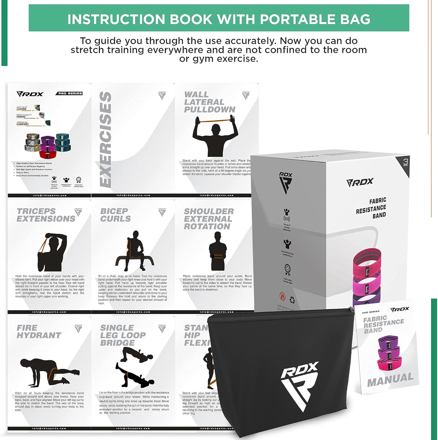 RDX Resistance Bands Fabric 3 Level Set, CPSIA RoHS REACH Certified, Premium Cotton Loop, Non Slip Latex Silk Grip, Yoga Pilates Legs Glutes Booty Stretch Workout, Exercise Home Gym Fitness Equipment