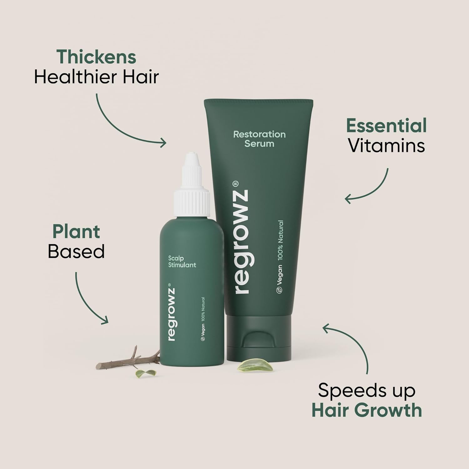 Regrowz Hair Growth Thickening Treatment Set – Advanced Scalp Stimulant & Restoration Serum – Natural Anti Hair Loss Thinning Care, Promote Fullness & Thickness for Men & Women – 3 Month Supply